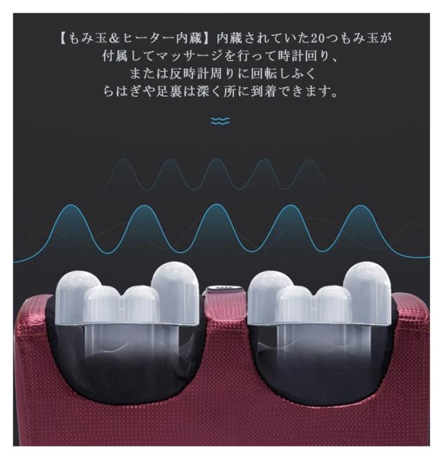 | 【もみ玉&ヒーター内蔵】内蔵されていた20つもみ玉が付属してマッサージを行って時計回り、または反時計周りに回転しふくらはぎや足裏は深く所に到着できます。ヒーター付きなので寒冷な気候、冷え込む朝、暖かい運転を好む方にぴったり。もみ玉の回転軸をあえて中心からずらし、よりランダムな動きを再現。 【足裏だけでなく、ふくらはぎにも】物理理念に従って筋肉を深くマッサージして経穴を刺激して体の血液の流れの促進、循環活かします。修復の能力を高め、コラーゲンの更新を加速し、リラックススしていい気分になれ睡眠改善という効果が行えます。足裏だけでなく、ふくらはぎにもマッサージが可能です。 【オートオフタイマー内蔵】使い過ぎをふせぐオートオフタイマーを内蔵します。使用中、たまに寝ていてもいいです。4つのボタンがあってボタンを軽く押すと運行スタートできます、初級者にも安く操作できて、年寄りにも短時間で身に付けます。 【プレゼントの最高選択】仕事や勉強などで長い間同じ状態を維持して、疲れ感じが起きやすいです。続くと足凝りなどに悩むかもしれません。ハイヒールをはきたい女性や睡眠の良くない中高齢者、デスクワーク、足の冷たい方にとって、これは、最高プレゼントです。 | |