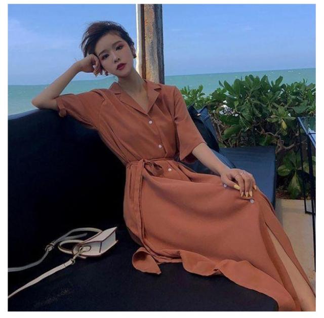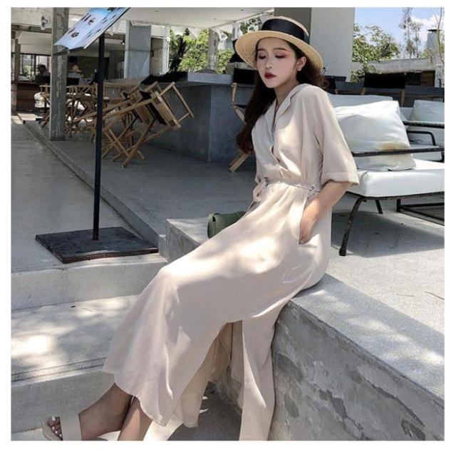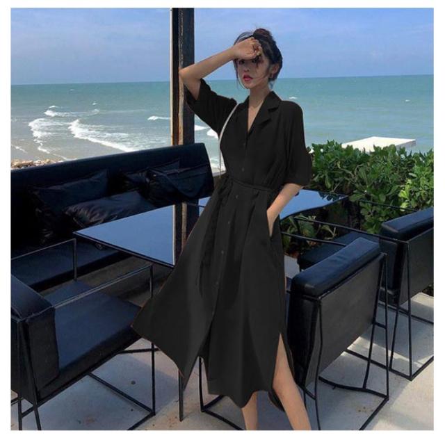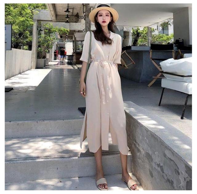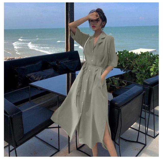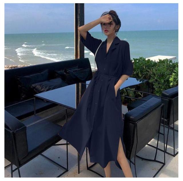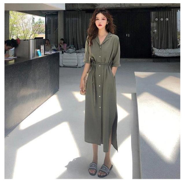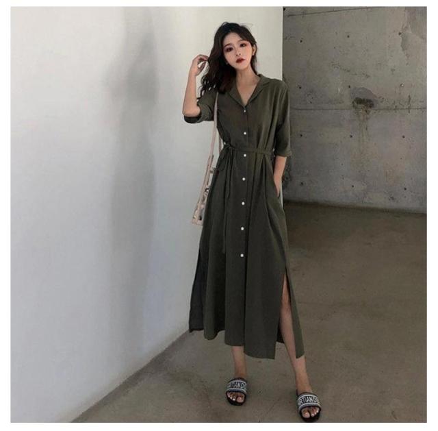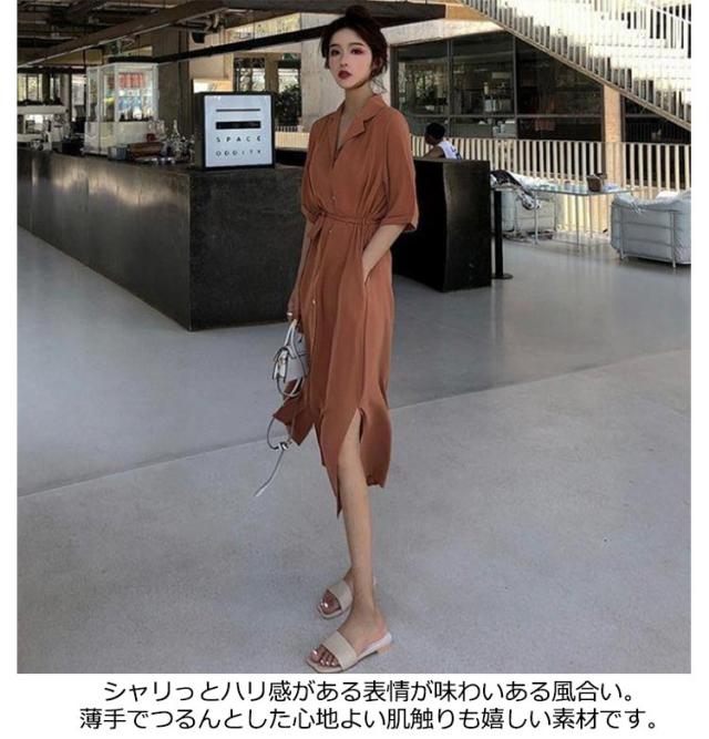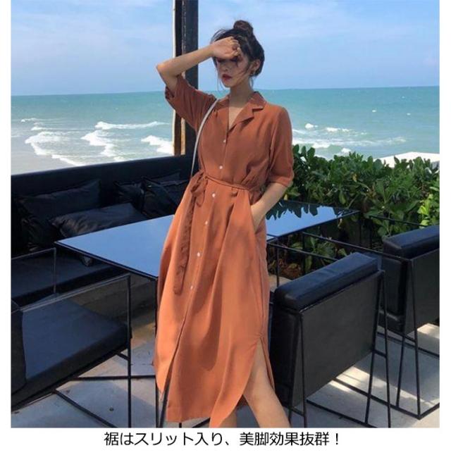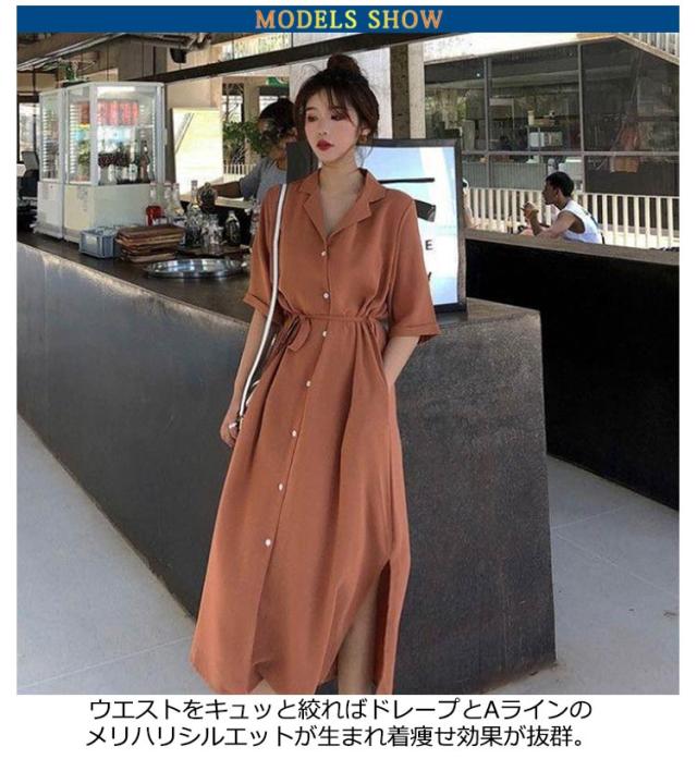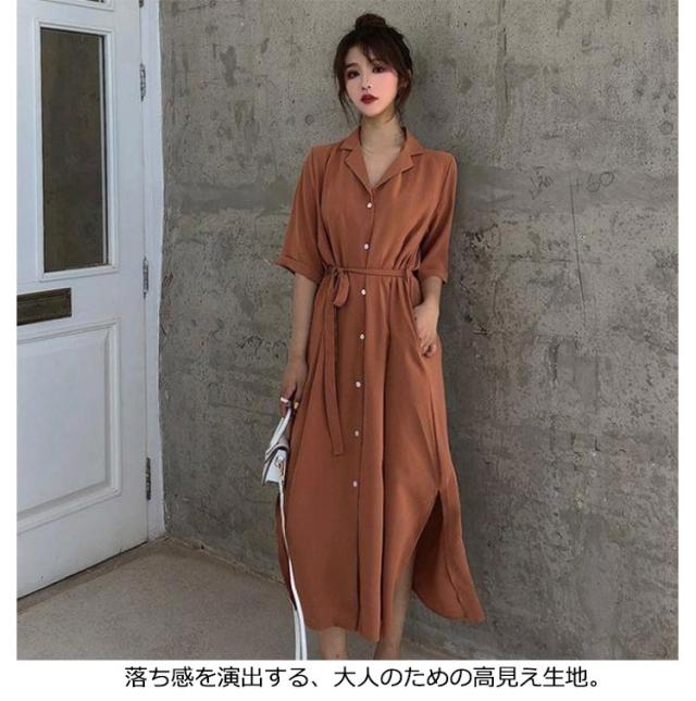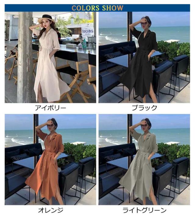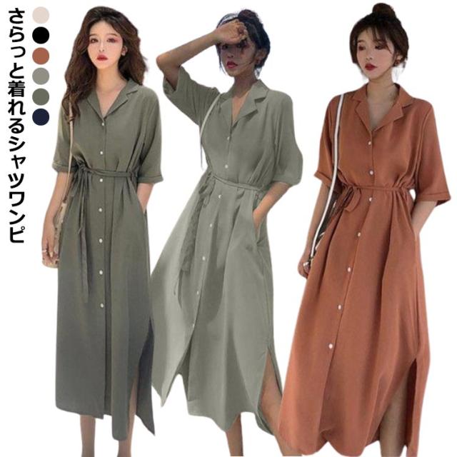 体型カバー 脚長 春夏 ロング 長袖 シャツワンピース ワンピース シャツ チュニック ステンカラー マキシワンピース トップス ロング丈 マキシワンピ スリット 無地 きれいめ ポケット マキシワンピース Aライン ゆったり