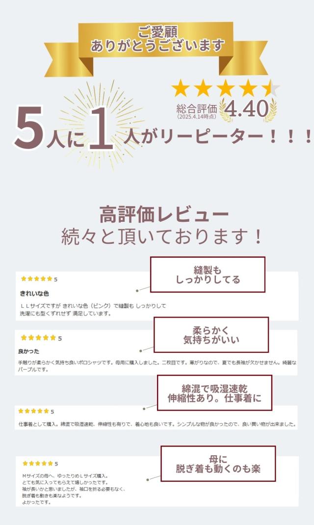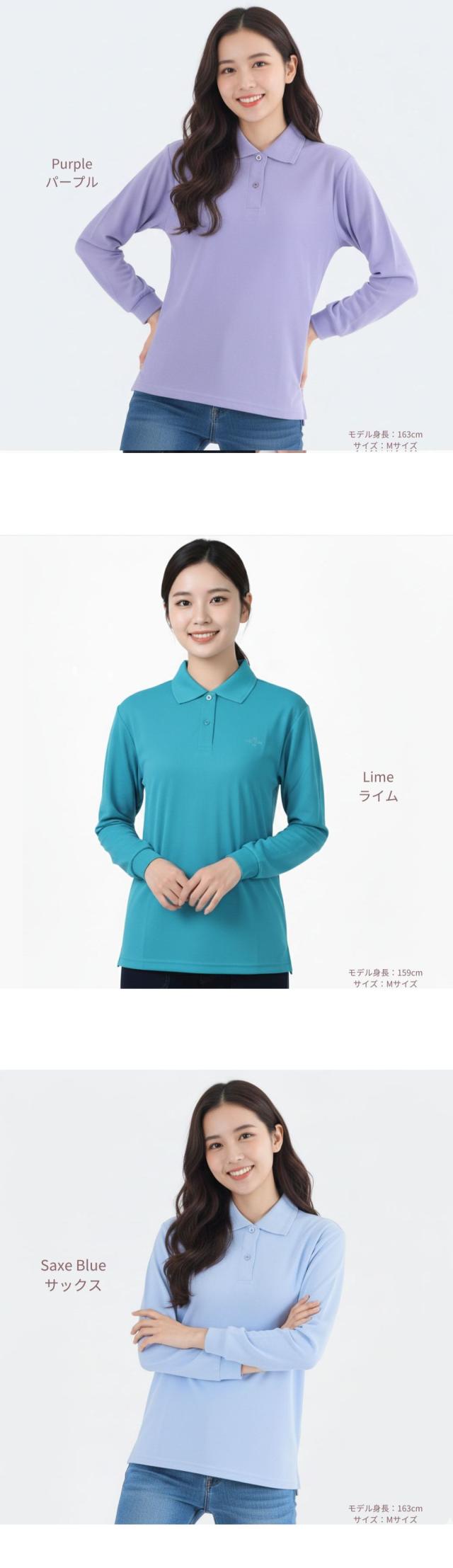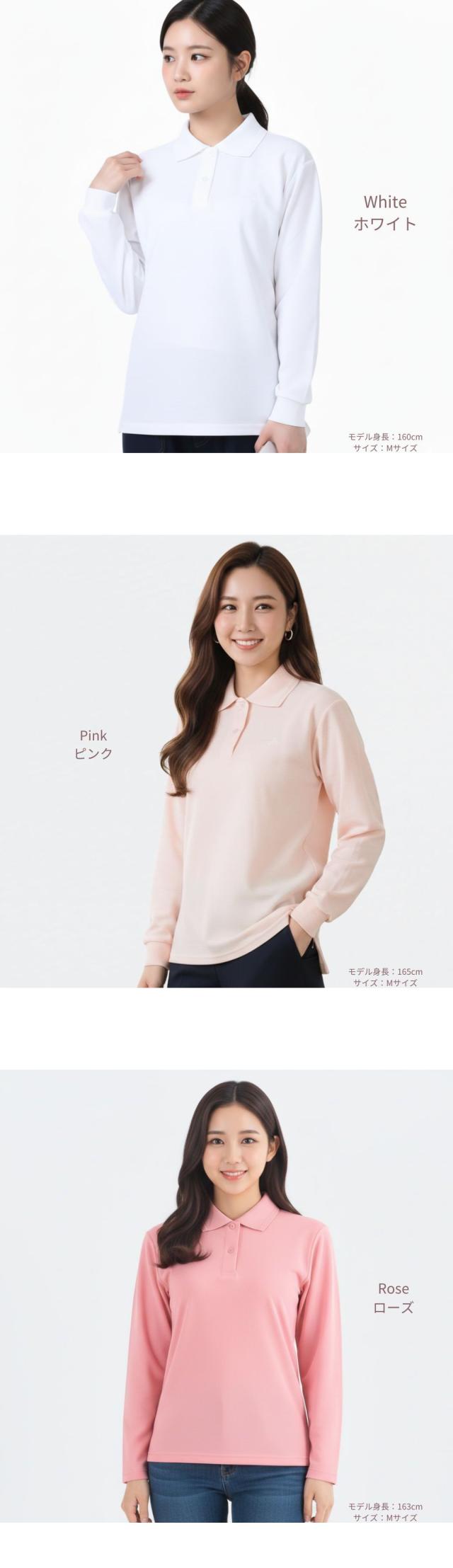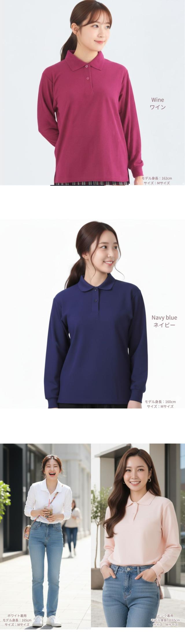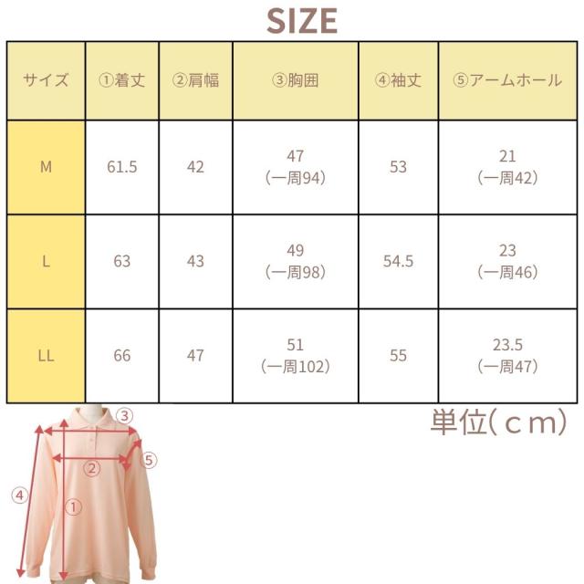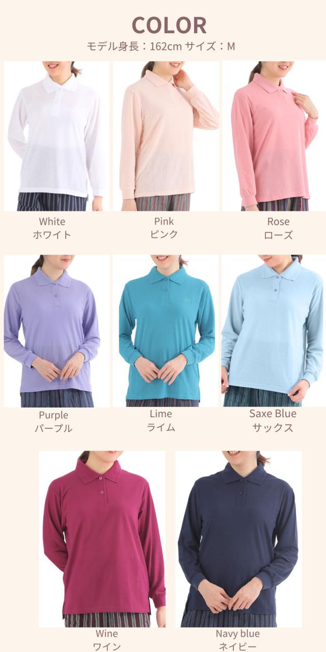 □カラー 1.ホワイト2.ピンク3.ローズ4.パープル5.グリーン6.サックス7.ワインレッド8.ネイビー□サイズ(M/L/LL) M:着丈61.5肩幅42アームホール42胸囲94袖丈53L:着丈:63肩幅43アームホール44胸囲98袖丈54.5LL:着丈66肩幅47アームホール47胸囲102袖丈55□素材(生地・毛糸) 綿・コットン:35%ポリエステル:65%□機能性(生地・布) 速乾/吸汗/形態安定/シワ防止/UVカット□商品特長 このポロシャツ レディース 長袖は、 夜、洗濯、翌朝着られる。速乾力に自信あり。シワにならず型崩れしない。仕事着はイージケア&速乾力 おすすめポイント ■ポリエステル65% 綿35% サラサラやわらか素材で、汗をかいてもすぐに乾くから着心地快適。汗っかきに嬉しい涼しいビジネスウェア。 ■通気性、吸水性がいいので、蒸れない。湿度のコンディションを保ってくれるのでスポーツウェアや体操着、運動着にも。 ■薄すぎず厚すぎない仕様で着回し力抜群!インナーやアウター次第では、長袖秋冬用から長袖春夏用まで使えて一年中大活躍。 ■柔らかい、軽い素材だからストレスフリー。テレワークやパソコン作業はもちろん外仕事や外作業にもおススメです。 ■首元狭め、袖長めで、日焼け防止、日焼け対策、紫外線カットにも。 今回着用サイズ⇒ M 丈:長め・ 普通 ・短め フィット感:タイト・ ちょうどいい ・ゆとりがある フィットネスジム用に試しに着用しました。サイズとしてはピタっとせずちょうどいい感じでした。※子供用から大人用まで、カラー ・ホワイト・ピンク・ローズ・パープル・ライム・サックス・ネイビー・ワイン‥豊富なカラー、定番からカワイイカラーまでお洒落を楽しもう。暗い落ち着きカラー・柔らかなパステルカラー・派手目のビビットカラー・ポップで明るいライトカラー・透けにくい暗めのダークカラー ご用意してます。 性別 女性用/women's/ウィメンズ/レディース 店舗サービス ■送料無料とってもリーズナブルな価格でご提供のアパレルショップ■ 1年中、何着でも送料無料!実用性の高いポロシャツは贈り物やプレゼントはいつだって喜ばれます。嬉しい配送無料のまま!! みんなで着られる、ミディアム丈、ロング丈に着こなせる豊富なサイズ。 母の日、敬老の日、誕生日プレゼントに。 ■サイズ、カラーの交換無料■ 1度のお買い物で1回3着までサイズやカラーの交換を無料にて承ります。 商品返却時の送料はこちらで負担!サイズ交換無料 ※事前の連絡なしでの商品のご返却はご対応が出来かねます。店舗お問い合わせよりご連絡をお願いいたします。 注意 ※1cm〜2cm程度の縫製誤差が生じる場合があります。 ※モニター環境によっては実際の色合いと異なる場合がございます。鹿の子素材の長袖ポロシャツ!□関連ワード シニア介護ポロシャツ長袖レディース専用【ビッグ】ゆったり大きい袖口しっかりリブ編み衿しっかりリブ編み吸汗速乾シワ防止uvカット夏の寒がり屋さんオススメ冷房冷え予防冷房冷え防止【白】【ピンク】濃色【ネイビー】透けにくい濃色後が長いインナーコーデしやすい羽おりにあわせやすいボタン大きめ洗濯機OK乾燥機OKポリエステル65%綿35%綿混綿混紡シニア服プレゼントギフトお母さん母さん体操グランドゴルフウォーキングストレッチ1,ホワイト【白】夏場に最適素材はポリエステル/綿の混紡が最も汗を吸い乾きが速く、着心地がいい!吸汗性速乾性はT/C素材がNO.1商品説明文 シニアファッションレディースポロシャツは、オールシーズン快適に着用できる長袖ポロシャツです。長袖商品は肌の露出を控え夏の紫外線防止に効果的です。長袖は日焼け防止に効果があります。吸汗速乾性とUVカット機能を備え、アクティブな日々をサポートします。形態安定加工でお手入れが簡単、いつでもキチンとした印象を保てます。豊富なカラーバリエーションとサイズ展開で、どなたにもぴったりの一枚が見つかります。特に、ユニホームとしても揃えやすく、チームやグループでの統一感を出すのに最適。柔らかく着心地の良い素材を使用しており、日常使いからスポーツシーン、仕事用としても幅広く活躍します。リーズナブルな価格で提供されるこのポロシャツは、母の日のプレゼントとしても喜ばれること間違いなしです。ロングセラー商品としての信頼性も魅力の一つです。