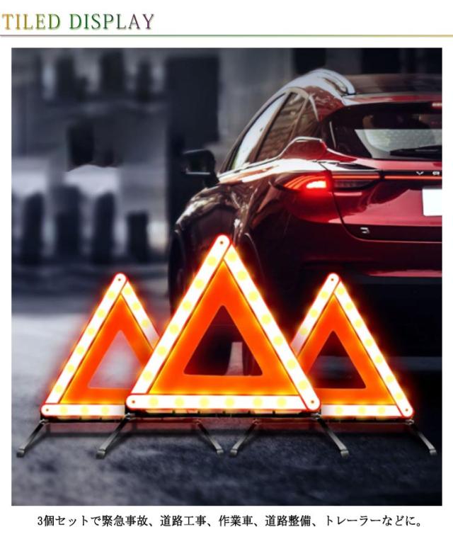 大型反射板 三角表示板 三角表示板 非常信号灯 反射板 三角停止板 三角反射板 三角板 三角表示灯 3個セット 緊急用 折りたたみ 車載用 コンパクト収納 昼夜兼用