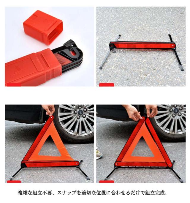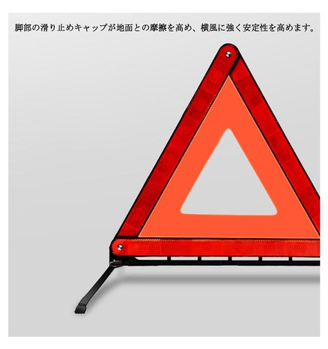 | 後続車からの追突事故を未然に防ぐ、視認性の良い三角反射板です。 反射材が視覚的な認知度を高め、夜間や雨で視界が悪いときでも目立つので、いつでも追突事故などの防止に役立ちます。 大型・強い反射で夜間でも見やすく、後方車両の警告に。 脚部の滑り止めキャップが地面との摩擦を高め、横風に強く安定性を高めます。 金属製の回転式スタンドは使用したい時、スタンドを広げるだけで展開します。 複雑な組立不要、スナップを適切な位置に合わせるだけで組立完成。 3個セットで緊急事故、道路工事、作業車、道路整備、トレーラーなどに。 | |