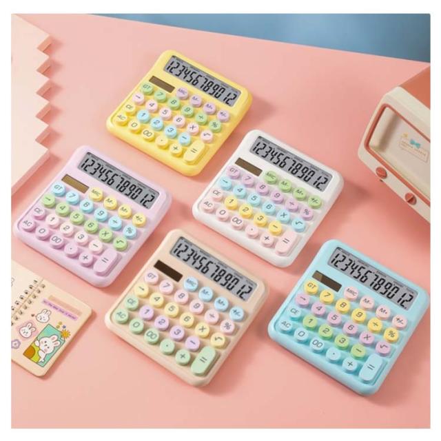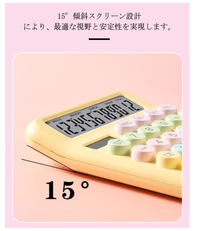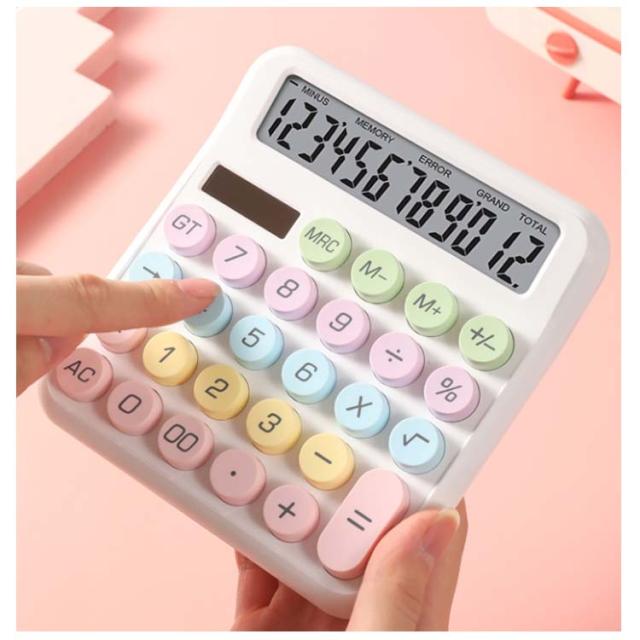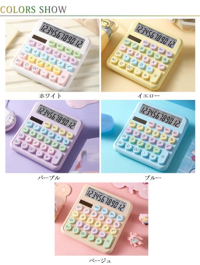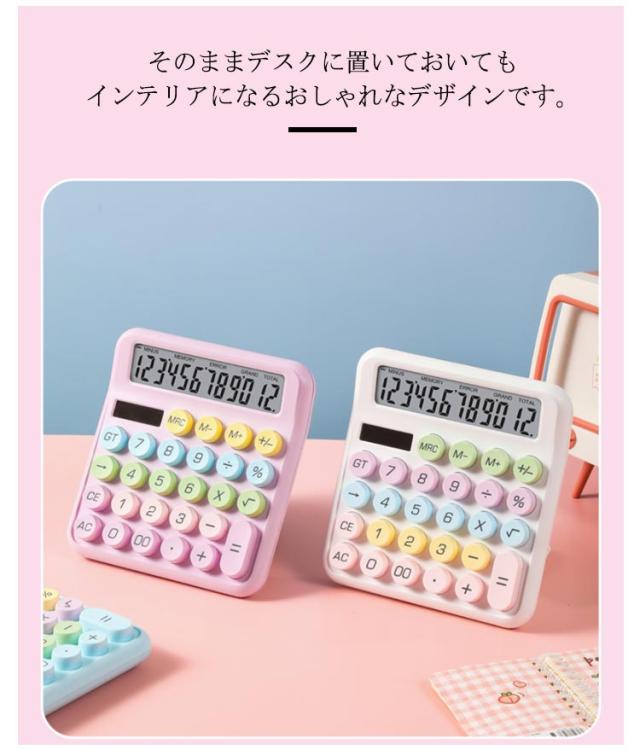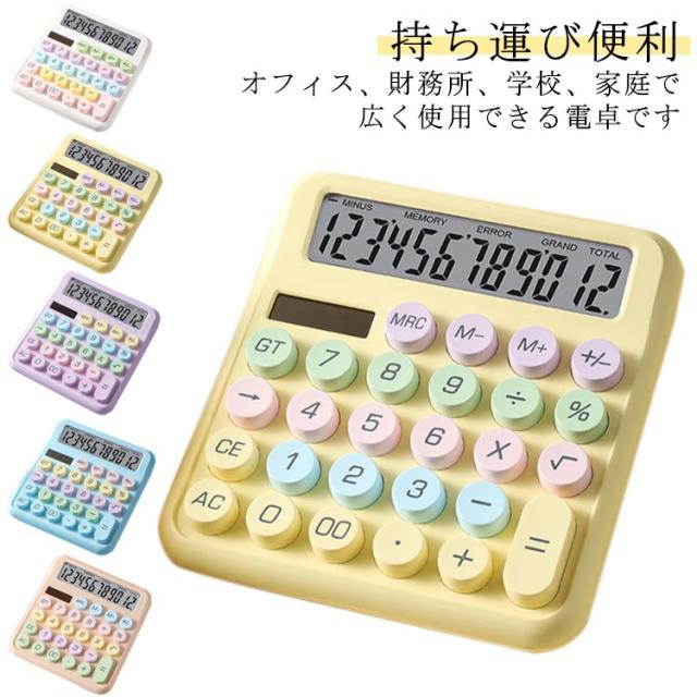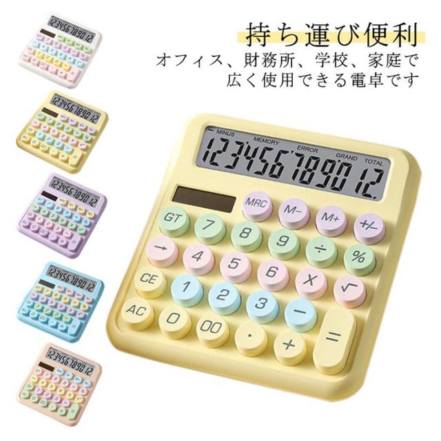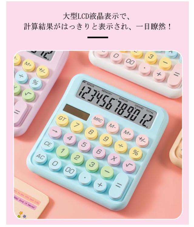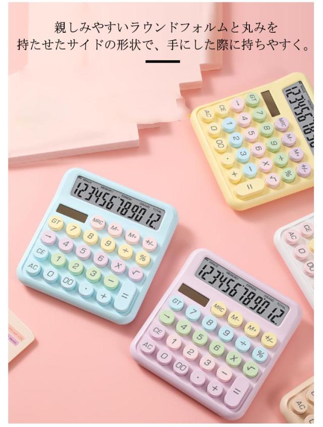 大型LCDディスプレイ 計算機 簿記 電池式 12桁 可愛い 電卓 静音 丸ボタン お洒落 滑り止め 持ち運び便利 電卓 日常用 オフィス用 学校用 事務用