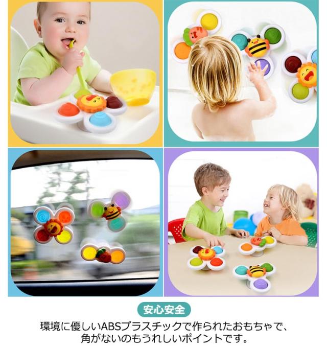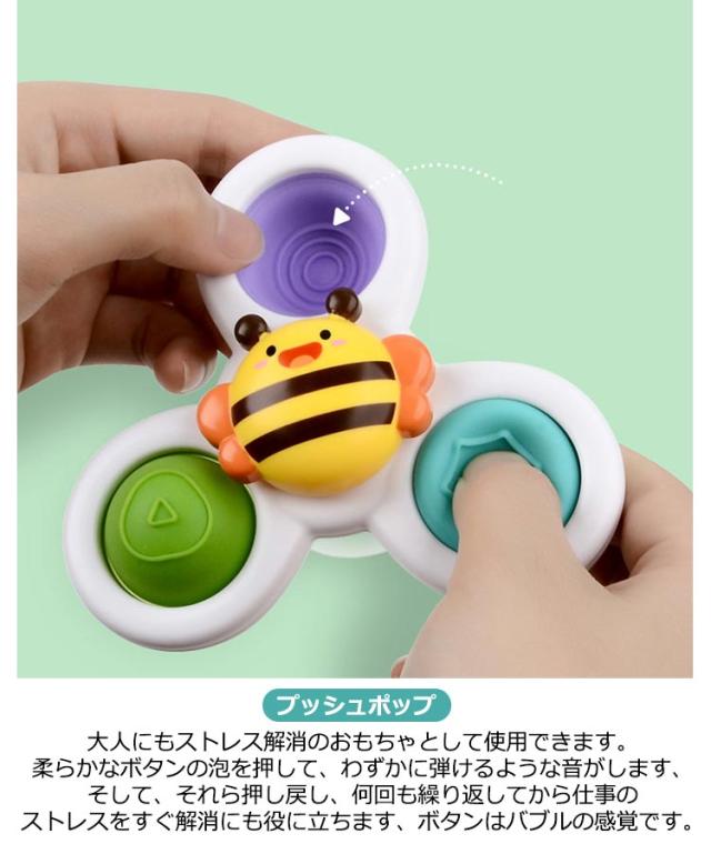 | 【優しい色といろいろな型】カラフルな双葉、三枚葉、四枚葉の3種類、バリや角がなく触り心地が良い、こまを回転しているうちに、赤ちゃんの手の世話をします。 【不安解消】吸盤のデザインを採用し、おもちゃはあらゆる場所に適しています、ガラス、壁、床、浴槽などに吸着ことができます。その上、外出食事の時でも、スムーズなテーブルにおもちゃをしっかり吸着ことができます。 【プッシュポップ】大人にもストレス解消のおもちゃとして使用できます。柔らかなボタンの泡を押して、わずかに弾けるような音がします、そして、それら押し戻し、何回も繰り返してから仕事のストレスをすぐ解消にも役に立ちます、ボタンはバブルの感覚です。 【安心安全】環境に優しいABSプラスチックで作られたおもちゃで、角がないのもうれしいポイントです。 | |