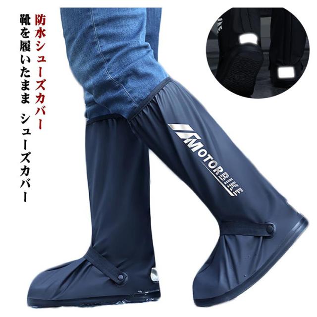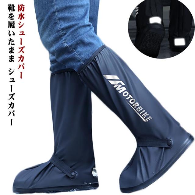 カバー 男女兼用 靴 ロング レディース レインブーツ 防水シューズカバー 左右セット 靴を履いたまま シューズカバー 自転車 バイク カバー 雨除け 雨具 バックファスナー ジップアップ レインシューズ メンズ レインシューズ 反射材 厚手 丈夫 通勤 通学