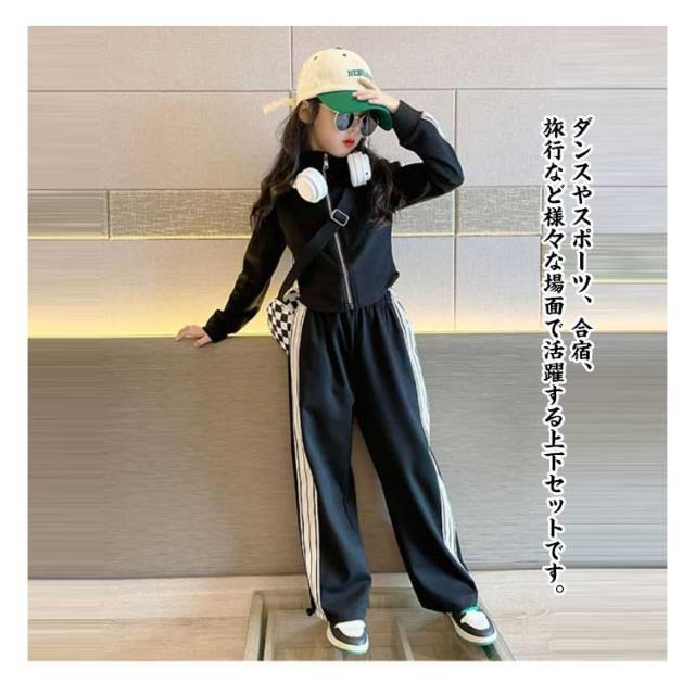 | 100~170cm!スポーティーでおしゃれなジャージ上下セットです オールシーズン使える通気性の良いスウェット素材を使用。 トップスはファスナーの前開きタイプです。 ダンスやスポーツ、合宿、旅行など様々な場面で活躍する上下セットです。 | |