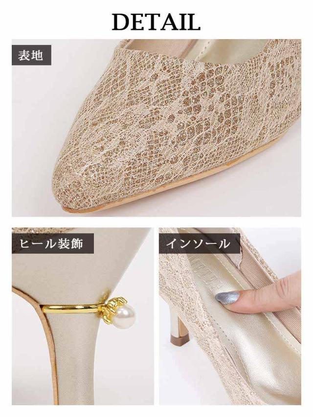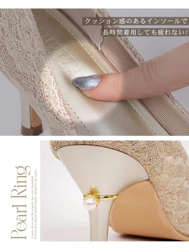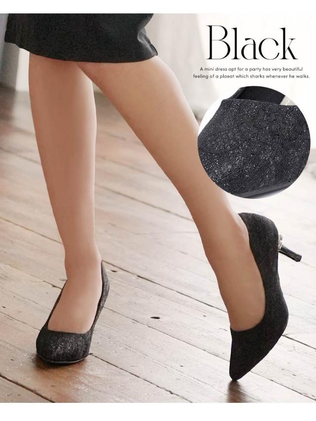 キャバパンプス RyuyuChick レース 低め フォーマルコーデ お呼ばれパンプス 黒 キャバ パンプス キャバパンプス