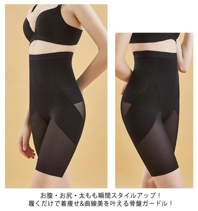 | お腹・お尻・太もも瞬間スタイルアップ! 履くだけで着痩せ&曲線美を叶える骨盤ガードル! 【全体を均一に強圧力で骨盤補正】 2層になったメッシュ素材のパワーネットにより、前後左右のズレや開きを整え、均一の強圧力でしっかりと引き締めます。産後のケアにも抜群です。 ハイウエストだからこそ実現下腹部から胸の下までお腹全体を広範囲にカバー。 【柔らかシェイプで太ももスッキ】 ぐるりと包み込むような製法で腰から太ももをすっきり見せます。裾はラインが目立たないシームレス加エ。 太ももを締め付けすぎず、柔らかくシェイプ。むっちりした太ももがスッキリ脚に。 【特殊立体縫製ベルトで美尻メイク】 特殊立体縫製ベルトがお尻のお肉をグッと持ち上げ、瞬間ヒップアップ。 強圧、弱圧の加減でヒップトップに垂れたお肉を集めてキレイな丸いお尻に。 蒸れやすいお尻部分は通気性のよい素材を使用しています。 【快適・蒸れないメッシュ生地】 快適な着け心地と締めつけ過ぎない絶妙な着け心地を実現しました。 通気性に優れたサラサラメッシュョ着用中の基れを防ぎます。 【服に響かない】 超薄型の生地だから、ズボンの下に履いても目立ちません。 スムース生地なので洋服にラインが響かず綺麗なシルエットで着こなせます。 | |