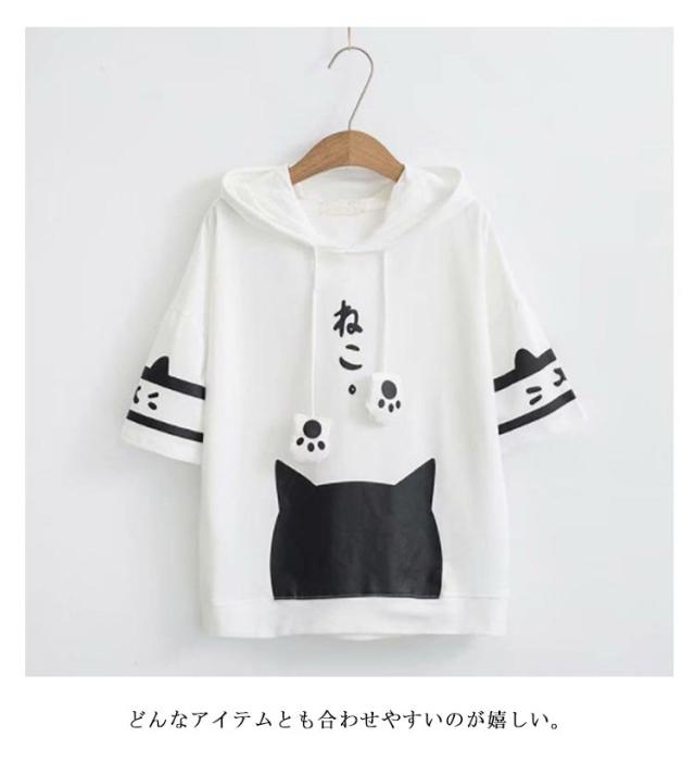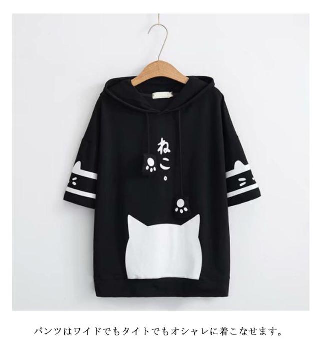 肉球 プルオーバー 春 大きいサイズ トップス 薄手 フード付き プルオーバー 半袖 レディース ねこ 可愛い おしゃれ 黒 猫耳付き 猫柄 パーカー 夏服 ネコ ねこ メンズ ルームウェア カジュアル 白 パーカー ゆったり 体型カバー 夏 猫耳 ギフト