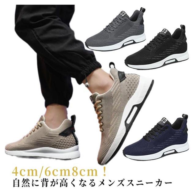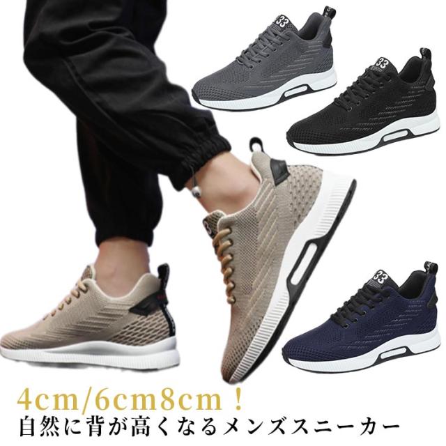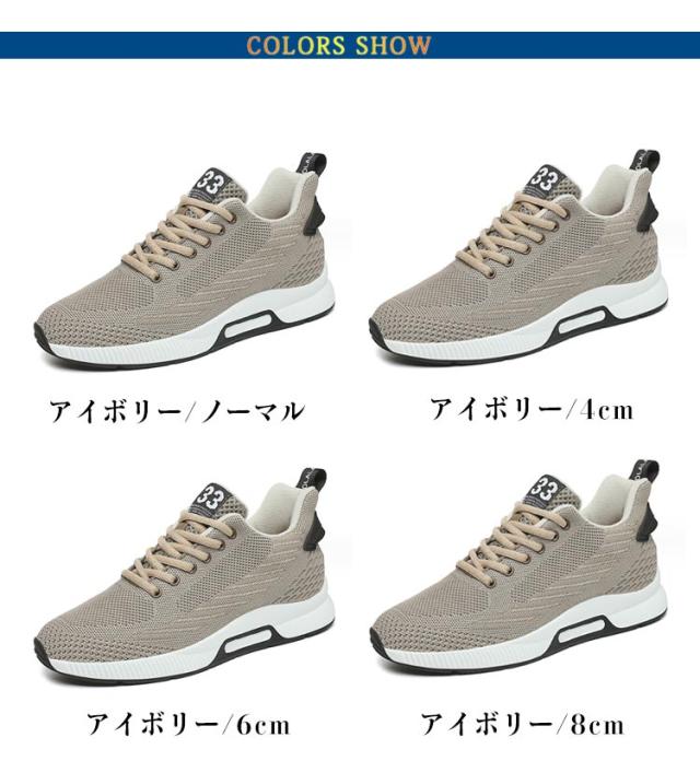 | 4cm/6cm8cm!自然に背が高くなるメンズスニーカー 外見からは気づかれない自然なデザイン。 長時間履いても疲れにくい軽量素材を使用。 コーディネートしやすいシンプルなデザイン。 クッション性に優れ衝撃を吸収するインソール。 アッパーメッシュ素材でムレを軽減。これからの季節に最適! | |