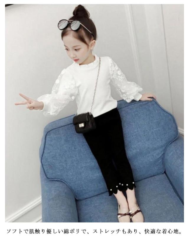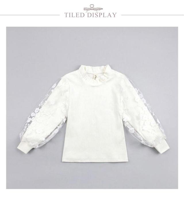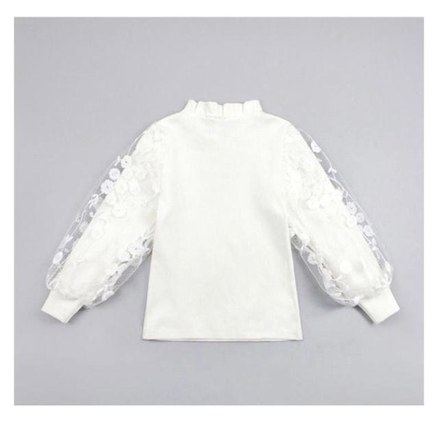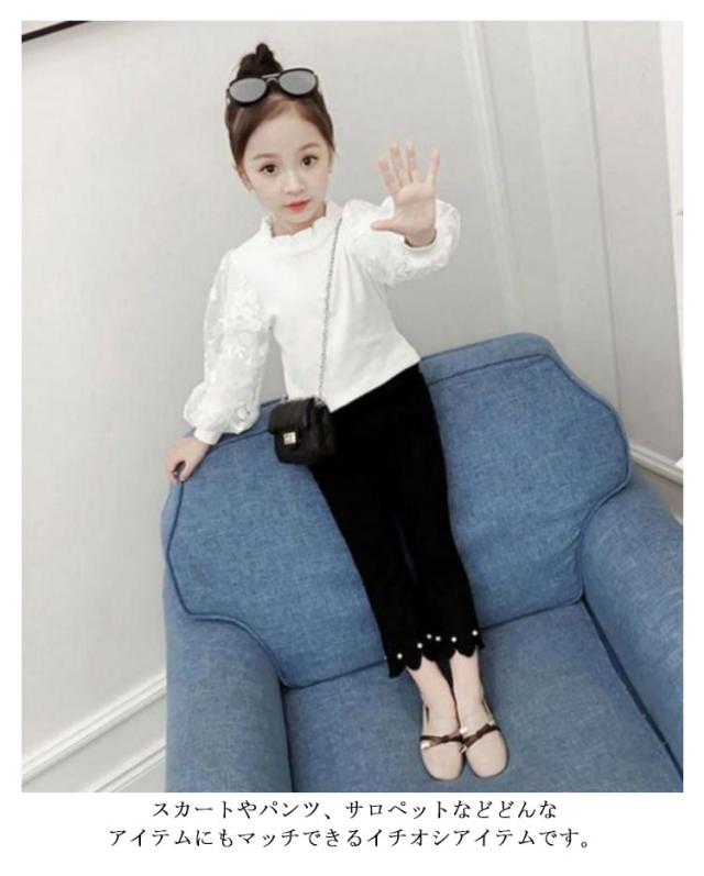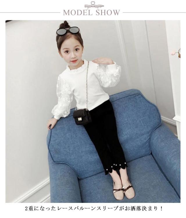 130cm ロンT カットソー フリル衿 バルーンスリーブ トップス 子供服 インナー 長袖Tシャツ トップス 長袖 袖レース ロンT 春秋 冬 あったか 白 100cm 110cm 女の子 120cm 150cm 140cm 150cm