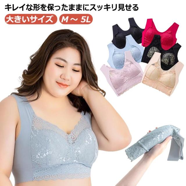 | 大きいサイズ M 〜 5L キレイな形を保ったままにスッキリ見せる ブラ全体も蒸れにくい素材で作られているため、暑い季節でも快適な着け心地を実現しました。 特有のU字型バックストラップで脇かわ背中をフラットに抑え、スッキリとした後ろ姿に。 ノンワイヤーでもバストをしっかり覆ってしっかり支えます サイドも幅広にとっており、脇肉もすっきり!きれいなラインを作ります。 幅広ストラップ採用で長時間の着用も痛くなく安定感のあるつけ心地。 バストが目立つから盛りたくない、太って見えるから小さく見せたい、 そんな大きい胸がお悩みの方におすすめです。 | |