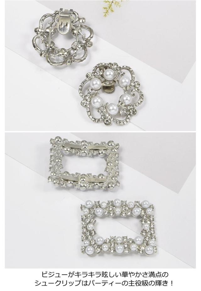 パンプス 2個組 パンプス キラキラ 飾り パール シューズ シューズクリップ クリップ 靴 おしゃれ レディース シューズアクセサリー かわいい 小物 シュークリップ 結婚式 花嫁 パーティー ウェディング ウェディングシューズ 上品 高級感 シューパーツ