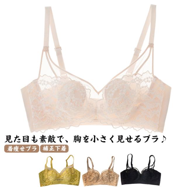 着やせ 和装ブラ 胸を小さく見せるブラ ブラ 総レース ブラジャー 送料無料 ノンワイヤー 着痩せブラ 小さく見える ノンワイヤーブラ 薄いパット 大きな胸を小さく見せるブラ 可愛い レースブラ 補正下着