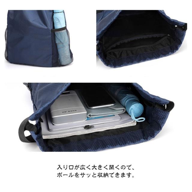 | バスケットボール、サッカーボールなどがこのバックパックに収納可能。 軽量なのに耐久性もあるナイロン素材のナップサック。撥水加工されているので、急な雨や雪などの悪天候にも安心して使える。 バッグ上部はキュッと絞れる巾着型。 バックパックタイプで両手が空き、自転車やバイクで練習に向かう方にも便利にアイテムです。 入り口が広く大きく開くので、ボールをサッと収納できます。 ジムだけではなくてちょっとした旅行にも使えるマルチバッグです。 通学、通勤、アウトドアやスポーツ、旅行など色々なシーンで使えるお役立ちアイテム。 | |