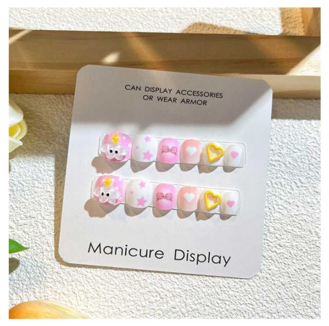 こども用 付け爪 12枚セット 貼るだけ ネイルチップ 3D 可愛い おしゃれ キッズ 子供用 立体 カンタン 女の子 子供用 韓国 ハート 粘着テープ式 キャラクター アニマル くま 星 花 フラワー パーティー 結婚式 誕生日 プレゼント 韓国 インスタ映え