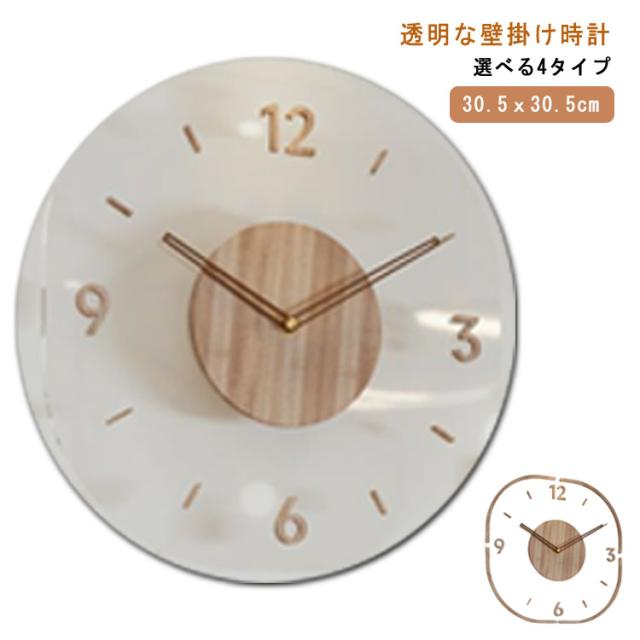 | 【透明な壁掛け時計】【30.5x30.5cm】【選べる4タイプ】 木製の針と、曲木のシンプルなフレームが上質感と温もりを感じさせる掛け時計。 北欧テイストでおしゃれな壁掛け時計で、木の温もりが感じられます。 文字盤は背面が透けて見えるのでインテリアによって様々な印象を与えます。 木製のシンプルなデザインなので、大人や子どもを問わずリビングはもちろん、寝室や子供部屋にもおすすめです! どこかレトロでアンティークな感じがかわいいです。 針は音がしない「静音タイプ」を採用し、気になるカチカチ音もありません。 引っ越しお祝い、誕生日、結婚、新築祝いなどのプレゼントにもおすすめな時計です! | |