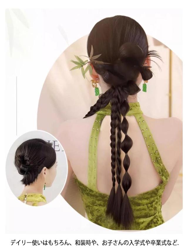| 三つ編みとお団子の新しい組み合わせ!ククリップ式なのでらくらく装着◎ 女性らしく上品で華やかな印象に♪ デイリー使いはもちろん、和装時や、 お子さんの入学式や卒業式など、 幅広く活躍してくれる便利アイテム。 | |