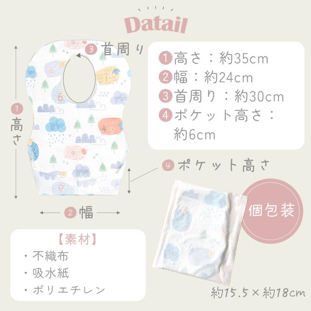 お食事エプロン 30枚入 個包装 使い捨てエプロン ポケット付き 保育園 食事用エプロン 子供 食事エプロン 幼稚園 男の子 女の子 不織布 ベビー 赤ちゃん 幼児 子供用 子ども 離乳食エプロン 外出時 おでかけ 旅行 スタイ ビブ 携帯 災害時 ポイント消化 MILASIC TN-DPDA