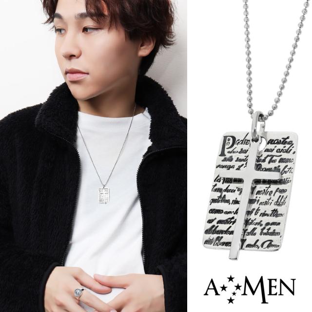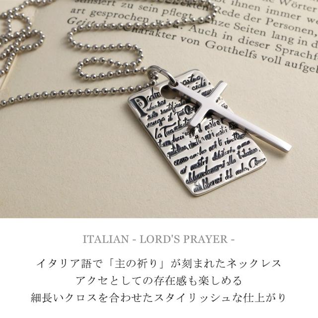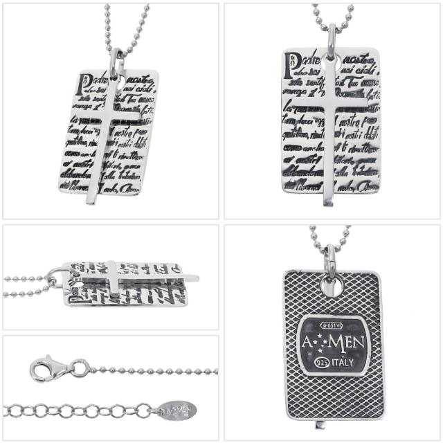 AMEN アメン 主の祈り プレート クロス シルバー ネックレス ペンダント ブランド イタリア語 キリスト 祈り 十字架 教会 シンプル クロスネックレス