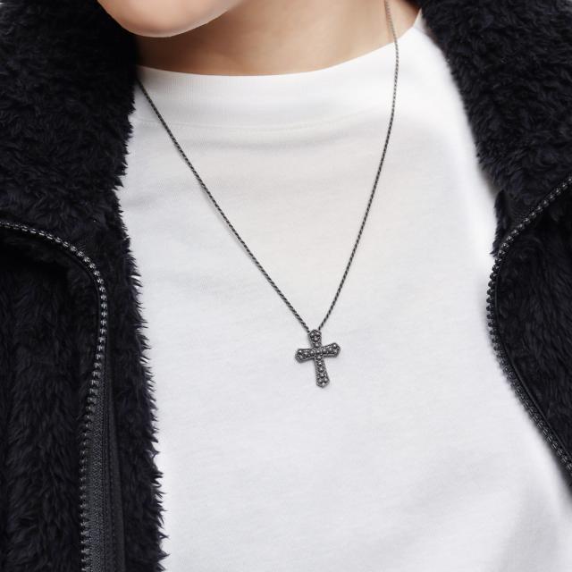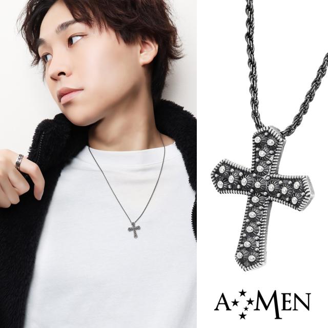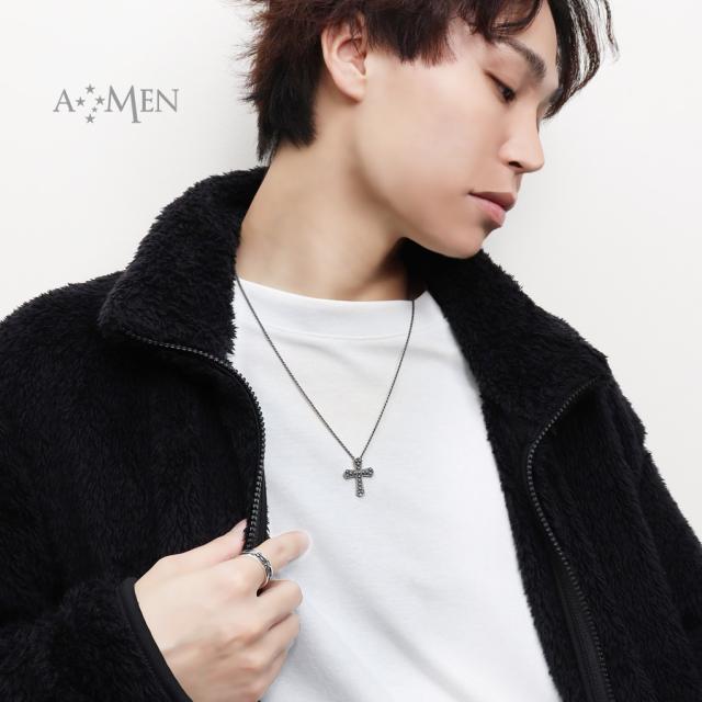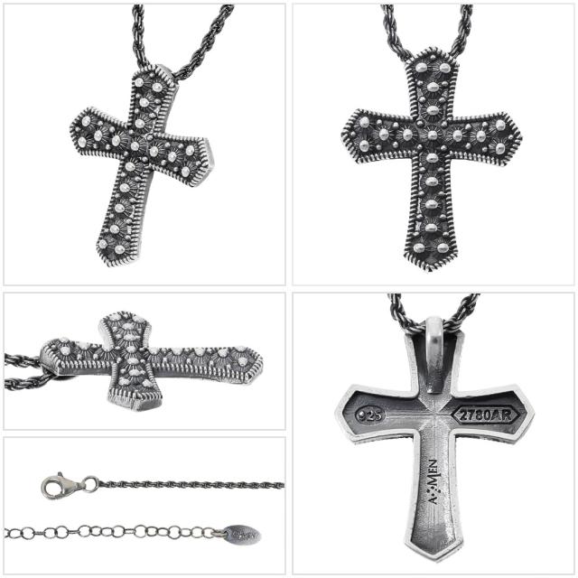 AMEN アメン 立体 ドット クロス シルバー ネックレス ペンダント ブランド ドットパターン 十字架 シック 燻し 黒 ブラック クロスネックレス