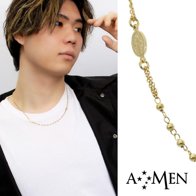 AMEN アメン マリア メダイ クロス ラウンドビーズ シルバー ネックレス ブランド 聖母マリア メダル ロザリオ 十字架 キリスト 教会 シンプル