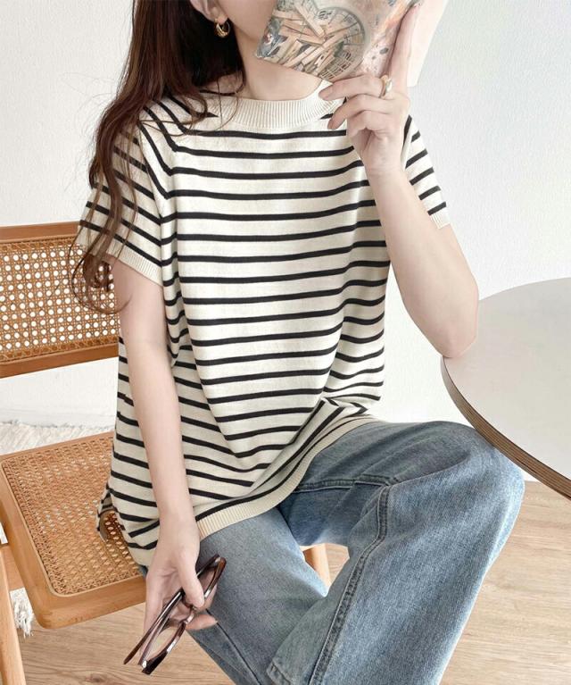 カジュアルすぎない上品さが魅力のボーダーニット。