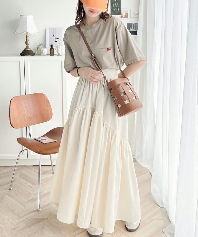 ★《JaVa ジャバコラボ》シンプルなのに格上げ。綿100%シルケット素材裾ドロストオーバーサイズTシャツ★