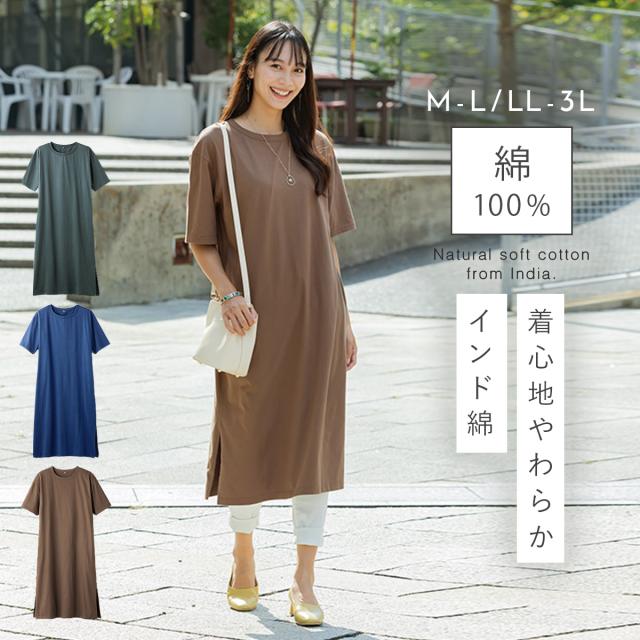 ワンピース 綿100 レディース,綿 100 レディース ワンピース,ワンピース 春 カジュアル, ワンピース,ロング,ロング丈,膝下,ひざ下,インド綿,綿100%,綿100,綿,コットン,ニット,肌に優しい,敏感肌,レディース,女性,大人,30代,40代,50代,60代,70代,春夏,春,夏,M,L,LL,3L,大きいサイズ,ゆったり,大きめ,二の腕カバー,体型カバー,細見え,すっきり,エコテックス,スリット入り,ポケット,ポケット付き,左右,おしゃれ,お洒落,オシャレ,かわいい,可愛い,シンプル,カジュアル,グリーン,緑,ブルー,青,グレージュ,ブラウン,茶色,