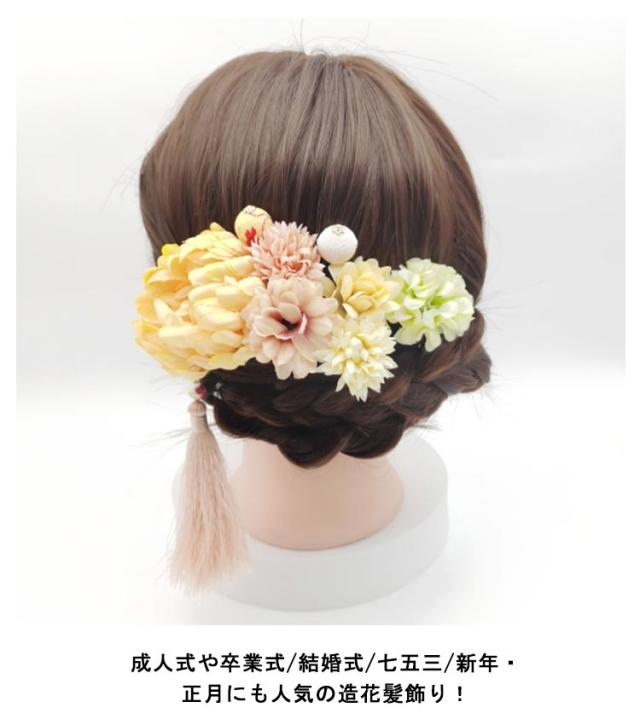 | 和柄の美しい多くの場合に使用できる女の子の髪飾り♪ 繊細な和風髪飾りです。 成人式や卒業式/結婚式/七五三/新年・正月にも人気の造花髪飾り! 花の色合いが素敵で存在感があります。 Uピンの先が丸くなっているので頭皮に優しい。 浴衣、着物、和装に最適です。花火大会、お祭り、結婚式、卒業式、成人式など色んなお祝いのシーンでご利用いただけます。 可愛いらしさと大人っぽさを併せ持つ、 親子お揃いでお使いいただけます。 どんなお着物にも合わせやすい!特に成人式の振袖や、卒業式の袴、結婚式のお呼ばれなど華やかなお着物にオススメです。 | |
