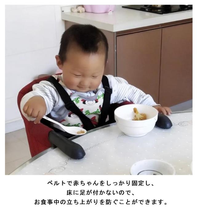 | 普段使いのダイニングテーブルに簡単取り付け!同じテーブルで家族みんなで食事を楽しむ事ができるベビーテーブルチェアです。 ベルトで赤ちゃんをしっかり固定し、床に足が付かないので、お食事中の立ち上がりを防ぐことができます。 テーブルを上下から挟むことで、ベビーチェアを机にしっかりと固定します。つまみを回転させるだけで簡単に取り付けできます。 耐荷重18kgまで。腰がすわる6ヵ月〜3歳頃までと、長い期間を使うことができます。毎日使う物だからコストパフォーマンス抜群♪ 肩・腰・股でしっかり赤ちゃんをホールドする、8点式シートベルトを採用。床が足につかないので、椅子から抜け出すことなく落ち着いてお食事ができます。 折りたたみ簡単で、スリムにできます。使わない時の収納や持ち運びに便利です。 折りたたみ式だからお家はもちろん外食や旅行先、ご実家への里帰りなどでも活躍間違いナシ! | |