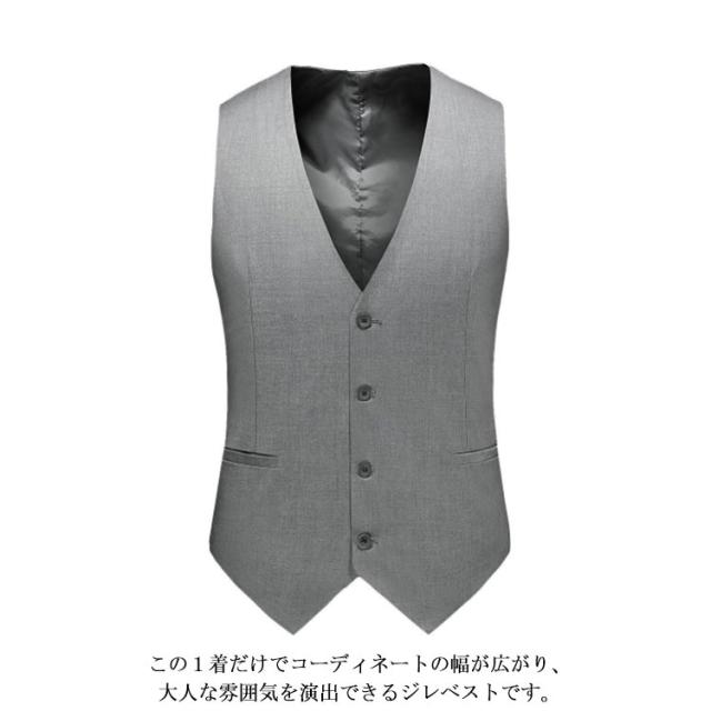 | M-5XL!カジュアルにもフォーマルにも適した4ボタンのスーツベストです。 立体的な裁断!全体的にきれいなラインを保つ。 フォーマルにはもちろん、カジュアルなシャツと合わせるとコーディネイトがぐっと引き締まります。 この1着だけでコーディネートの幅が広がり、大人な雰囲気を演出できるジレベストです。 | |