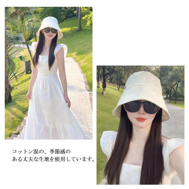 帽子 バケットハット 折りたたみ レディース つば広 ストラップ 55-62cm バケハ お出かけ あご紐 ハット サイズ調整可 リボン 可愛い 春夏 綿 おしゃれ 垂れロングリボン 通勤 UVカット 紫外線 防風 対策 バケハ