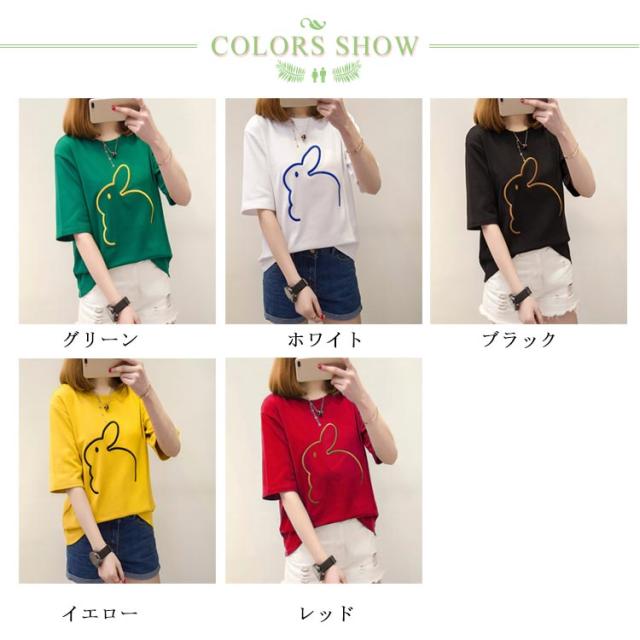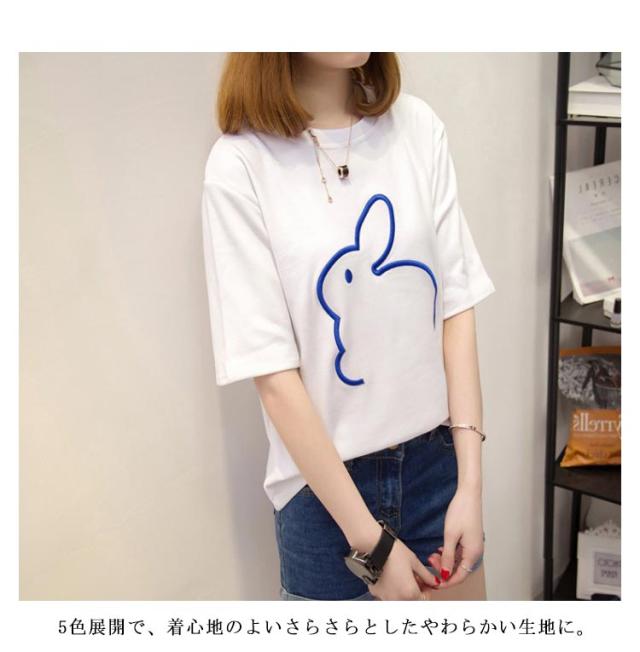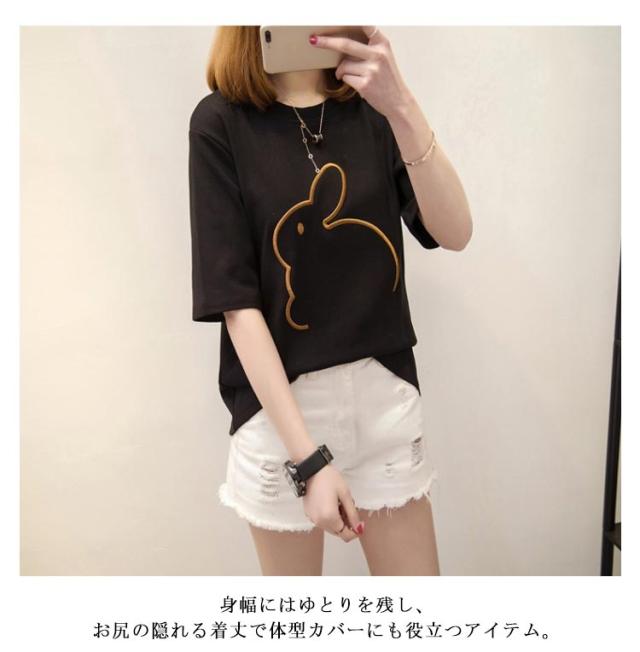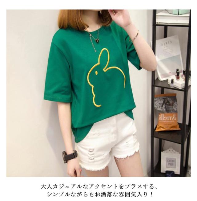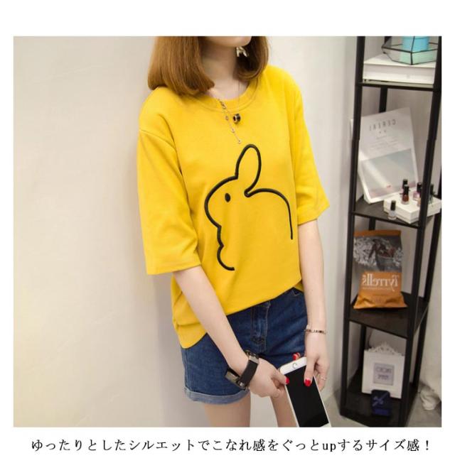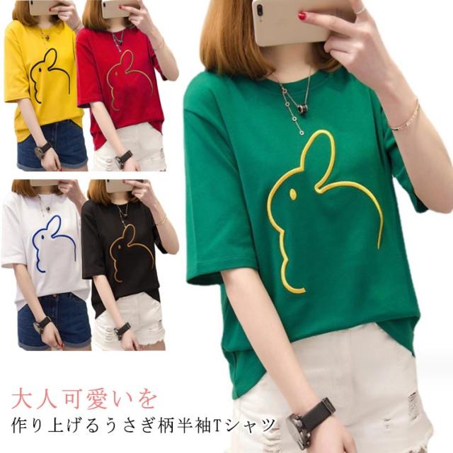 可愛い 半袖Tシャツ Tシャツ うさぎ柄 かわいい レディース 半袖Tシャツ 半袖 大きいサイズ カットソー おしゃれ シンプル 女性 お洒落 カジュアル 大人 レディースファッション ミディアム丈 部屋着 プレゼント ギフト