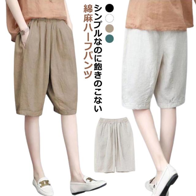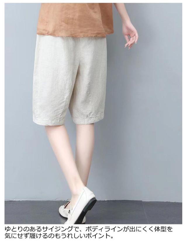 ボトムス 涼しい ハーフ丈 ショートパンツ ゆったり 可愛い 薄手 レディース 綿麻 5分丈 ハーフパンツ 短パン 膝上 夏 春 着痩せ ナチュラル 無地 シンプル 体型カバー 部屋着 ハーフパンツ ウエストゴム ルームパンツ 大人 女性 おしゃれ