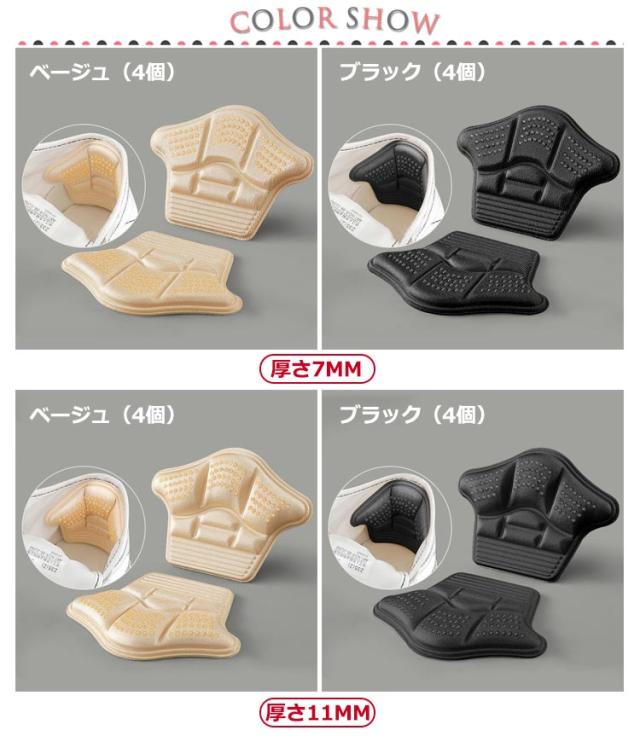 痛み軽減 パカパカ防止 パンプス 靴ずれ 靴用 スニーカー 脱げ防止 サイズ調整 クッション 靴擦れ防止 靴擦れ防止 踵保護 4個セット 滑り止め 男女兼用 粘着式