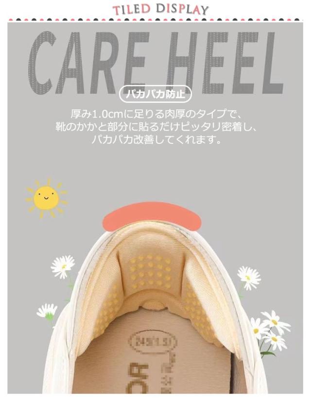 | 2足セット!男女兼用のかかとクッション。 【パカパカ防止】厚み1.0cmに足りる肉厚のタイプで、靴のかかと部分に貼るだけピッタリ密着し、パカパカ改善してくれます。 【かかと保護】やわらかクッション素材が靴とかかとのブレを軽減し、滑り止め効果抜群で、効果的にかかとの圧力を和らげることができます。 【使いやすい】靴ずれパッドの背面には粘着性の強いステッカー付き、裏紙を剥がしてきれいに拭いた靴に貼り付けるだけで簡単に装着できます。 【様々な靴に対応できる】ハイヒール、パンプス、ローファー、ビジネスシューズなど様々な靴に対応! | |