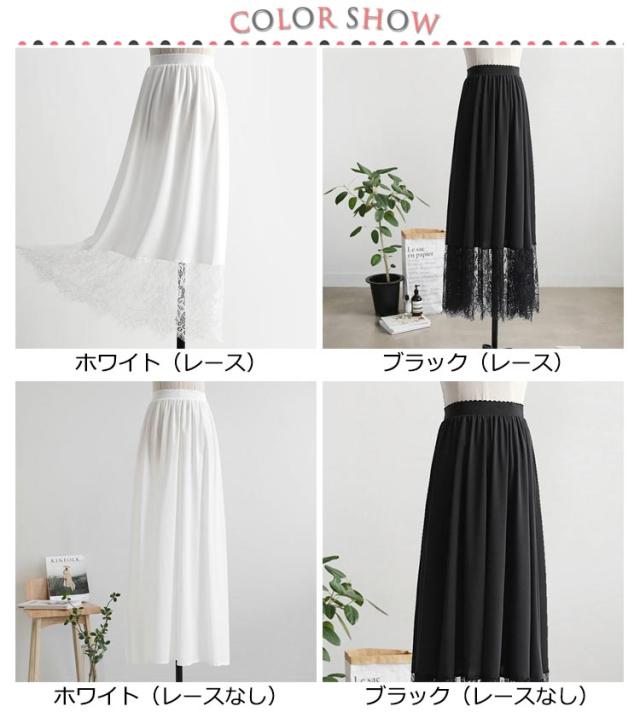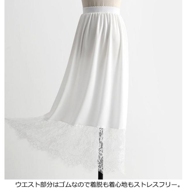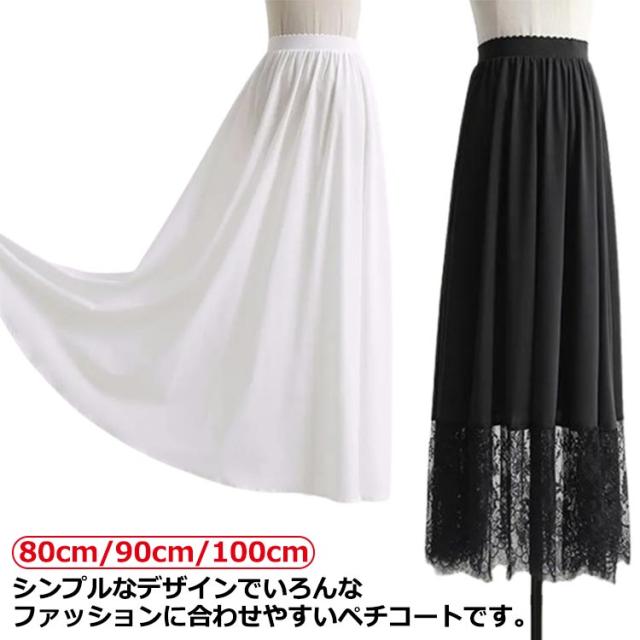 ペチコート レース スカート ロングスカート 80cm/90cm/100cm インナー 重ね着 ワンピース ペチコート レイヤード風 ドレスインナー ゴムウエスト 透けない 透け防止 レディース ロング丈 お洒落