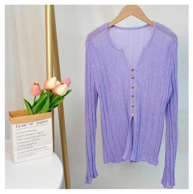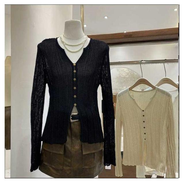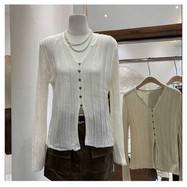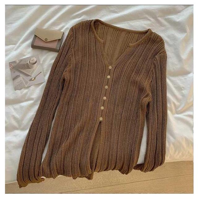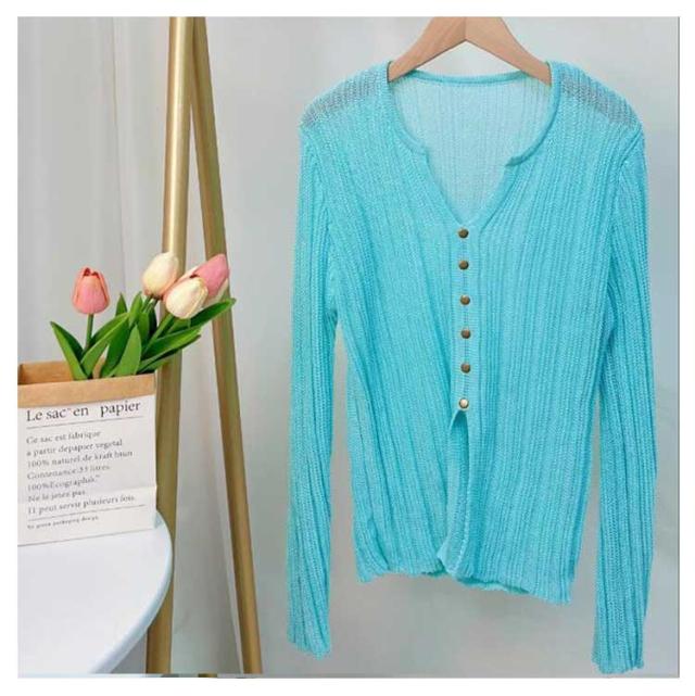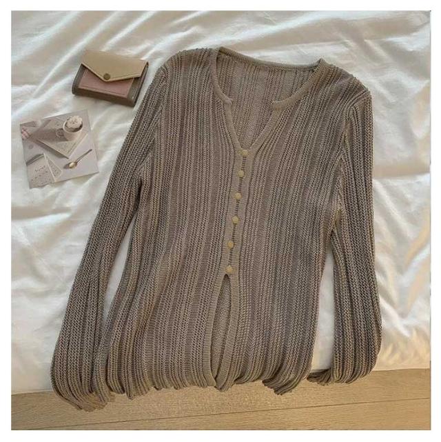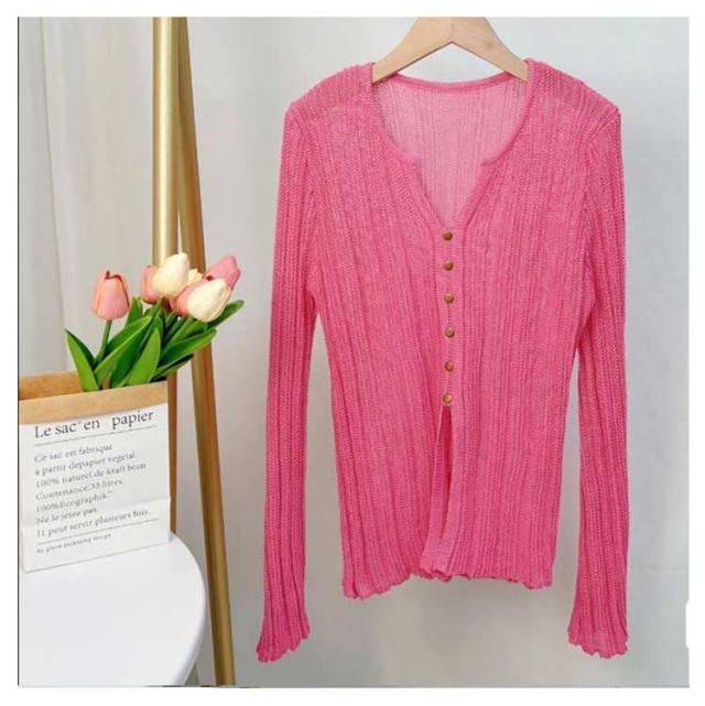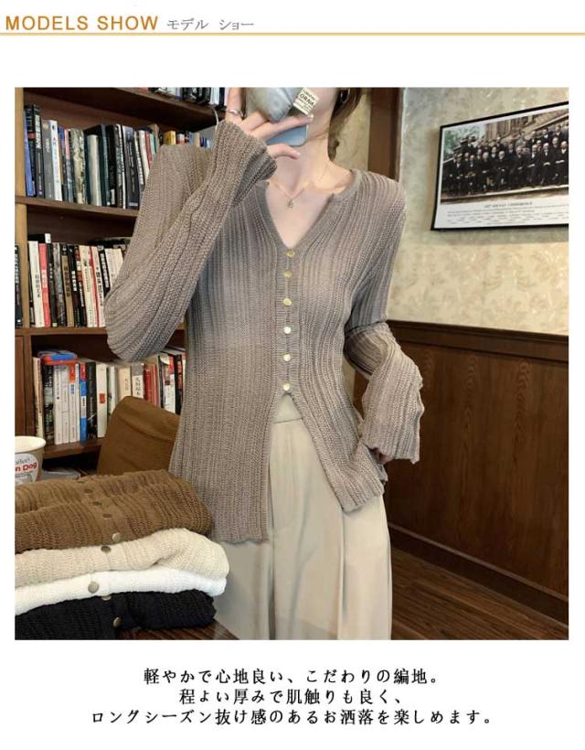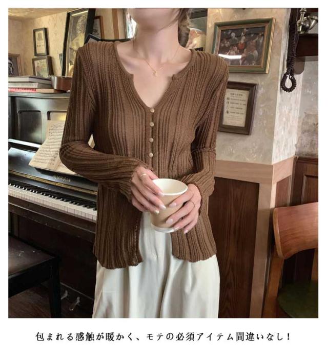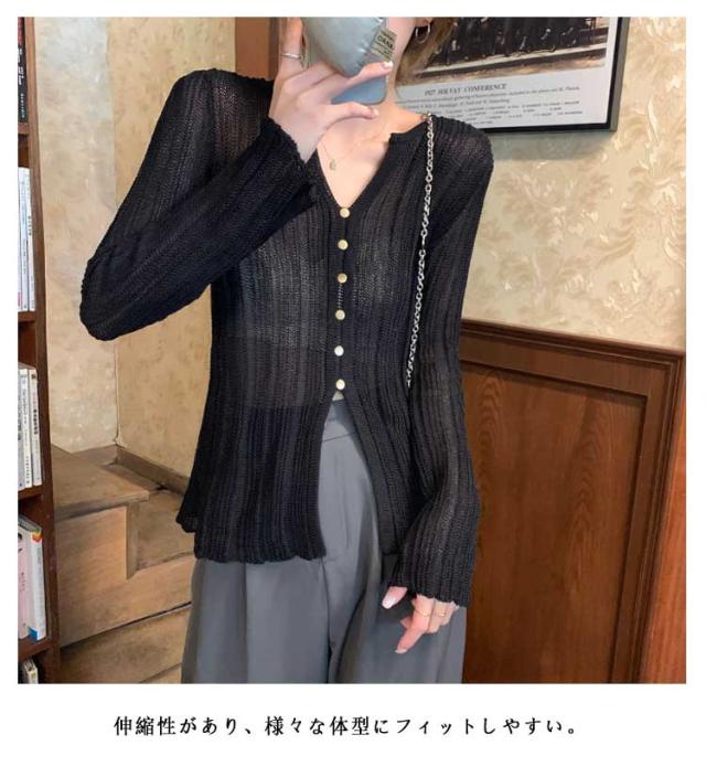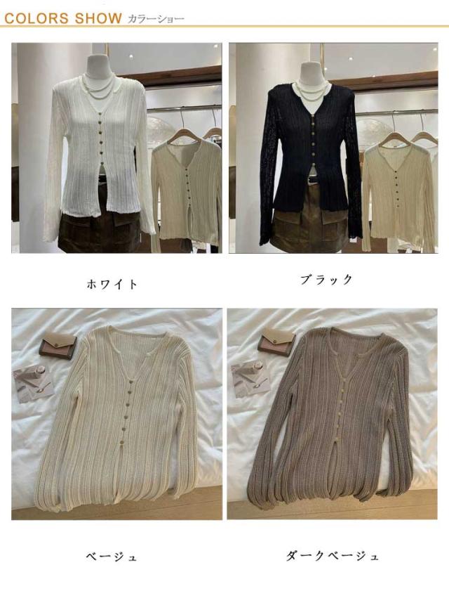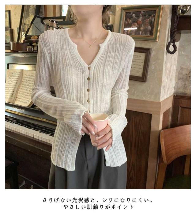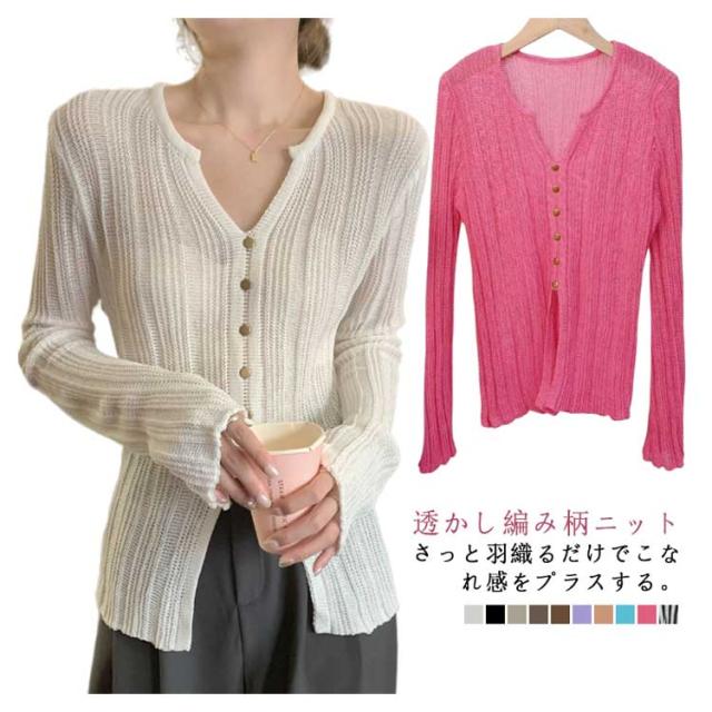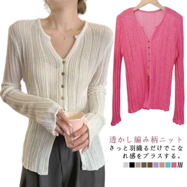 冬 カーディガン Vネック ニットカーディガン レディース 春 重ね着 リブニット 全10色!透かし編みニット 羽織り オフィス 透け 秋 ブラウス 長袖 全10色!透かし編みニット レイヤード シアー カジュアル フォーマル 入学式 卒業式 韓国