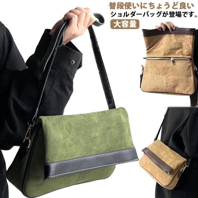 大容量 レディース 斜め掛け バッグ 肩掛けバッグ ショルダー 大人 カバン シンプル 軽量 きれいめ 鞄 カジュアル バッグ エコバッグ ショルダーバッグ かばん 収納 おしゃれ ファスナー付き 無地 ショルダーバッグ 通勤 大きめ 通学 グリーン ブラウン