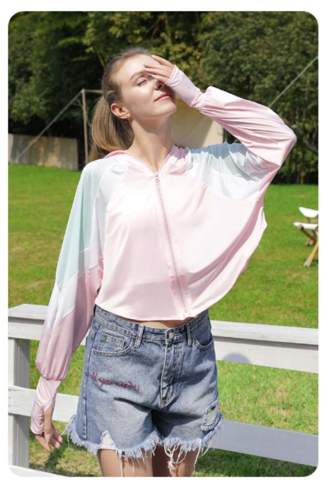 パーカー レディース ジップアップ トップス 接触冷感 ハット一体型 長袖 ラッシュガード 吸汗 速乾 アイスシルク 配色 指穴 ラッシュパーカー uvパーカー uv対策 日除け 軽量 ラッシュガード 涼しい マリンスポーツ 涼感 体型カバー