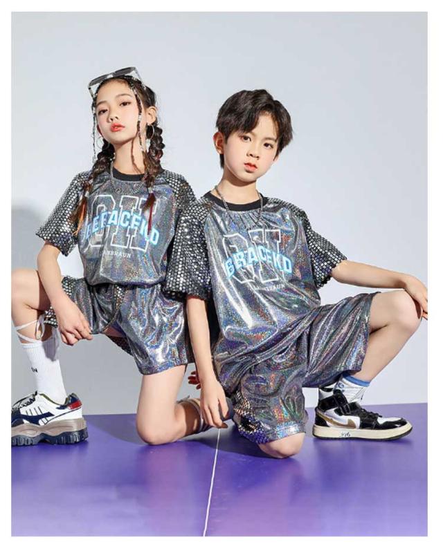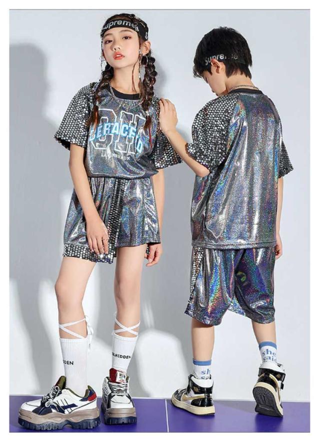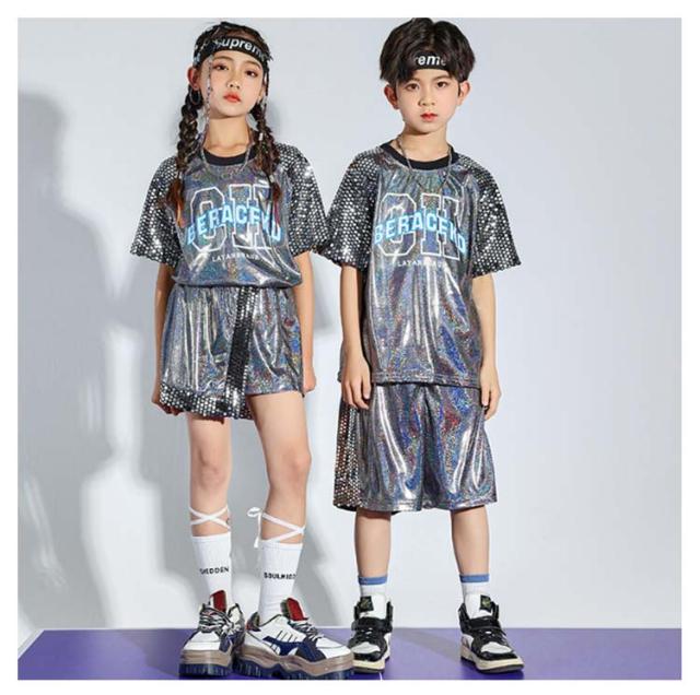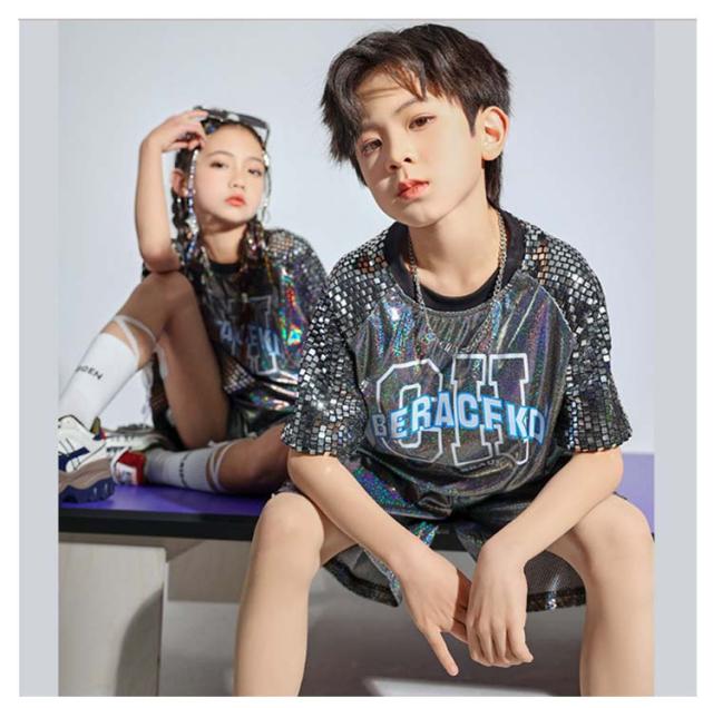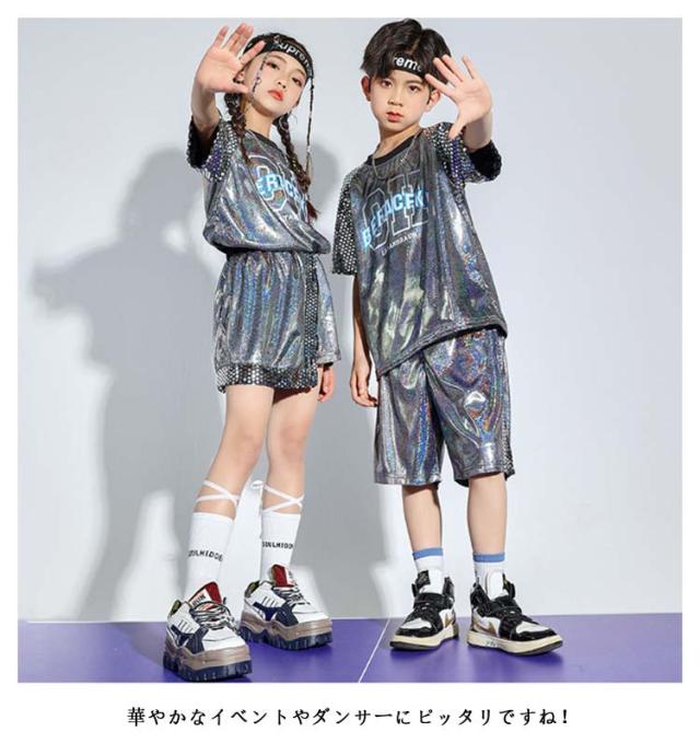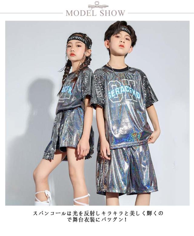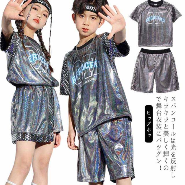 キッズダンス衣装 ダンス衣装 セットアップ ヒップホップ スカート キラキラ ショートパンツ スパンコール ヒップホップ Tシャツ おしゃれ きれいめ 女の子 男の子 ガールズ ボーイズ 子供服