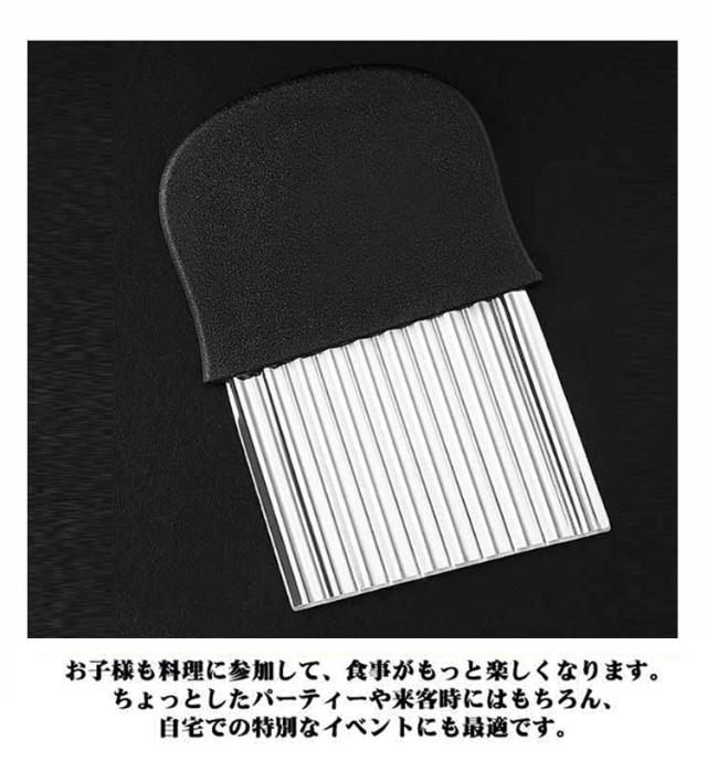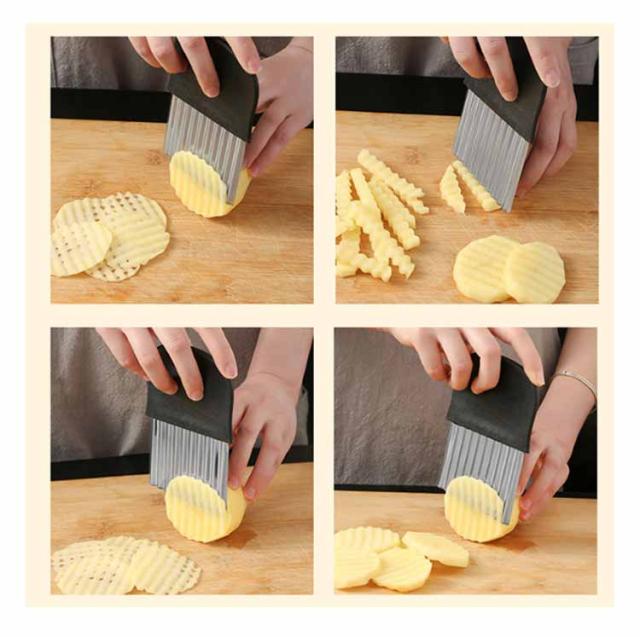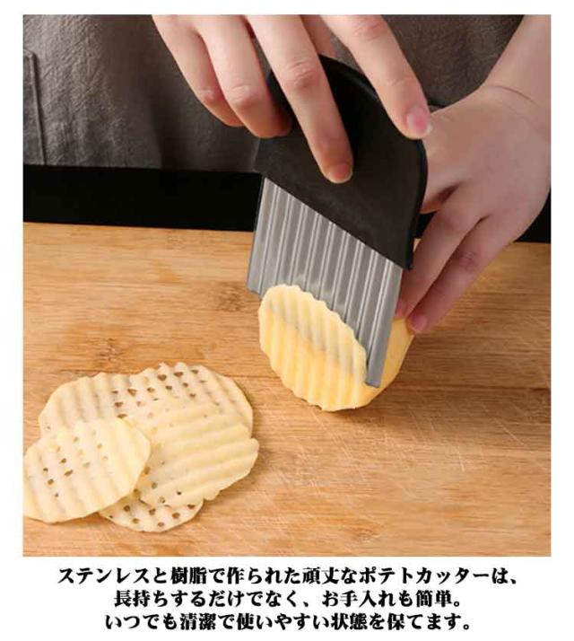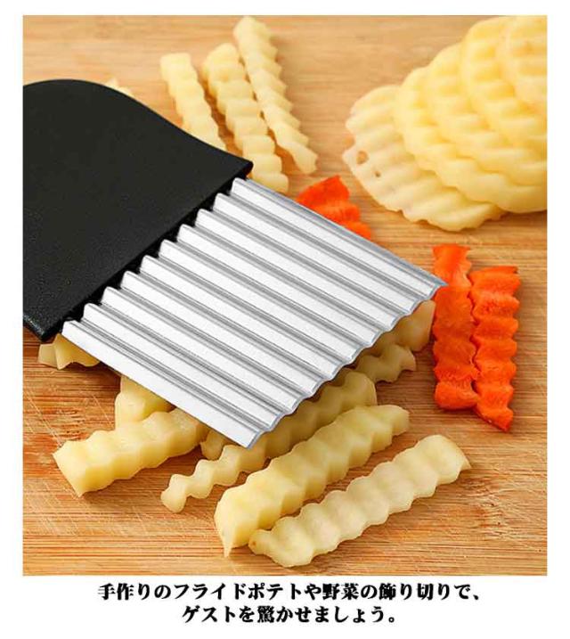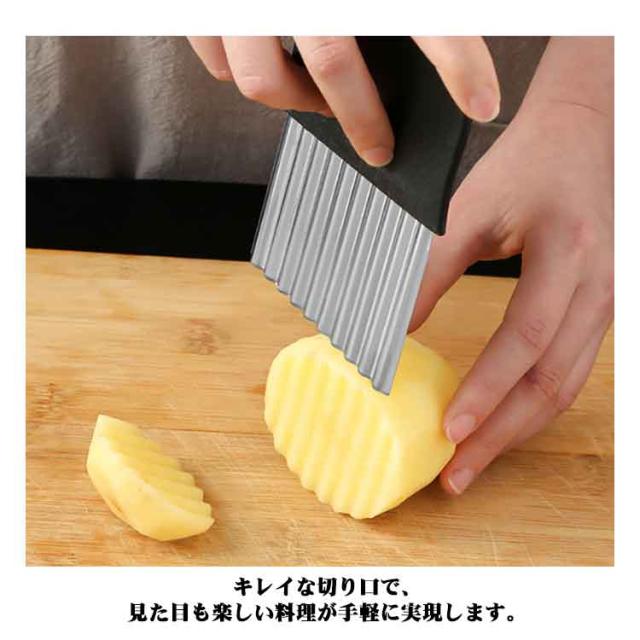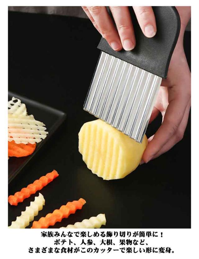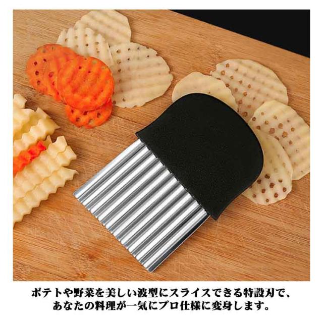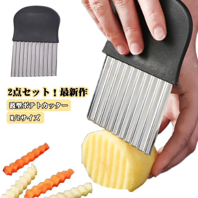 | 【波型ポテトカッター】【2点セット!最新作】【M/Lサイズ】 ポテトや野菜を美しい波型にスライスできる特設刃で、あなたの料理が一気にプロ仕様に変身します。キレイな切り口で、見た目も楽しい料理が手軽に実現します。 家族みんなで楽しめる飾り切りが簡単に!ポテト、人参、大根、果物など、さまざまな食材がこのカッターで楽しい形に変身。お子様も料理に参加して、食事がもっと楽しくなります。 ちょっとしたパーティーや来客時にはもちろん、自宅での特別なイベントにも最適です。手作りのフライドポテトや野菜の飾り切りで、ゲストを驚かせましょう。 ステンレスと樹脂で作られた頑丈なポテトカッターは、長持ちするだけでなく、お手入れも簡単。いつでも清潔で使いやすい状態を保てます。 | |