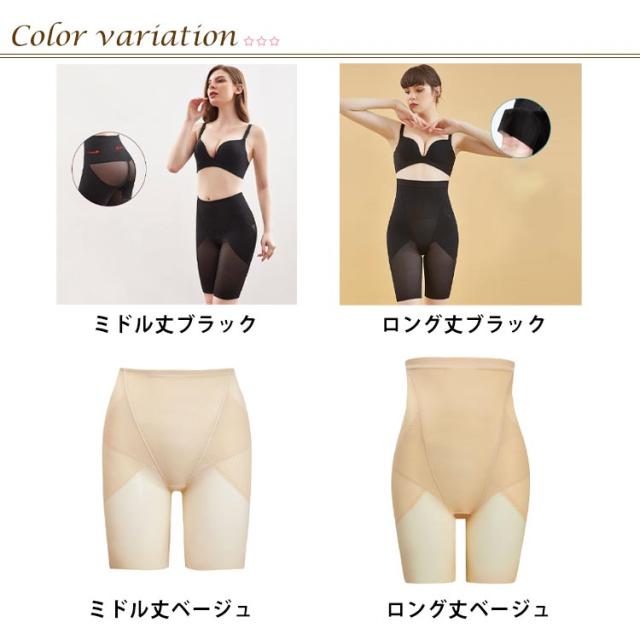| お腹・お尻・太もも瞬間スタイルアップ! 履くだけで着痩せ&曲線美を叶える骨盤ガードル! 【全体を均一に強圧力で骨盤補正】 2層になったメッシュ素材のパワーネットにより、前後左右のズレや開きを整え、均一の強圧力でしっかりと引き締めます。産後のケアにも抜群です。 ハイウエストだからこそ実現下腹部から胸の下までお腹全体を広範囲にカバー。 【柔らかシェイプで太ももスッキ】 ぐるりと包み込むような製法で腰から太ももをすっきり見せます。裾はラインが目立たないシームレス加エ。 太ももを締め付けすぎず、柔らかくシェイプ。むっちりした太ももがスッキリ脚に。 【特殊立体縫製ベルトで美尻メイク】 特殊立体縫製ベルトがお尻のお肉をグッと持ち上げ、瞬間ヒップアップ。 強圧、弱圧の加減でヒップトップに垂れたお肉を集めてキレイな丸いお尻に。 蒸れやすいお尻部分は通気性のよい素材を使用しています。 【快適・蒸れないメッシュ生地】 快適な着け心地と締めつけ過ぎない絶妙な着け心地を実現しました。 通気性に優れたサラサラメッシュョ着用中の基れを防ぎます。 【服に響かない】 超薄型の生地だから、ズボンの下に履いても目立ちません。 スムース生地なので洋服にラインが響かず綺麗なシルエットで着こなせます。 | |