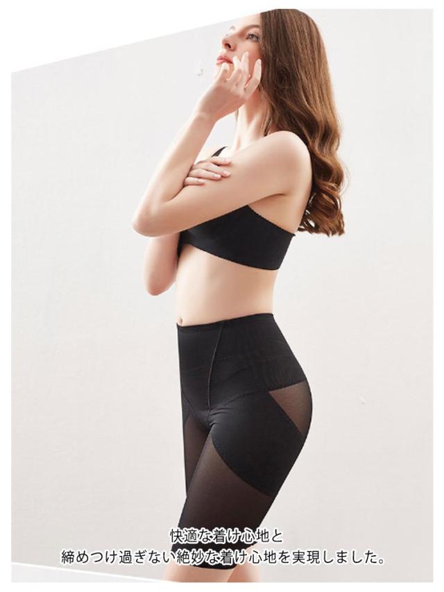| お腹・お尻・太もも瞬間スタイルアップ! 履くだけで着痩せ&曲線美を叶える骨盤ガードル! 【全体を均一に強圧力で骨盤補正】 2層になったメッシュ素材のパワーネットにより、前後左右のズレや開きを整え、均一の強圧力でしっかりと引き締めます。産後のケアにも抜群です。 ハイウエストだからこそ実現下腹部から胸の下までお腹全体を広範囲にカバー。 【柔らかシェイプで太ももスッキ】 ぐるりと包み込むような製法で腰から太ももをすっきり見せます。裾はラインが目立たないシームレス加エ。 太ももを締め付けすぎず、柔らかくシェイプ。むっちりした太ももがスッキリ脚に。 【特殊立体縫製ベルトで美尻メイク】 特殊立体縫製ベルトがお尻のお肉をグッと持ち上げ、瞬間ヒップアップ。 強圧、弱圧の加減でヒップトップに垂れたお肉を集めてキレイな丸いお尻に。 蒸れやすいお尻部分は通気性のよい素材を使用しています。 【快適・蒸れないメッシュ生地】 快適な着け心地と締めつけ過ぎない絶妙な着け心地を実現しました。 通気性に優れたサラサラメッシュョ着用中の基れを防ぎます。 【服に響かない】 超薄型の生地だから、ズボンの下に履いても目立ちません。 スムース生地なので洋服にラインが響かず綺麗なシルエットで着こなせます。 | |