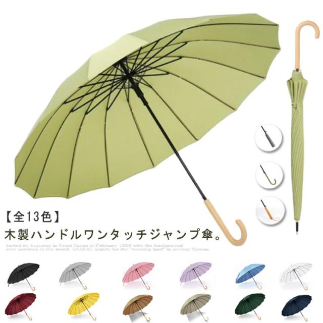 かさ 女性 16本骨 長傘 メンズ 撥水 傘 ジャンプ傘 軽量 木製ハンドル おしゃれ レディース 耐風 頑丈 16骨 丈夫 防水 通勤 長傘 通学 男性 雨の日 梅雨対策 雨傘 長傘 ロング傘 和傘 和風 無地 シンプル