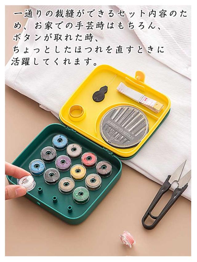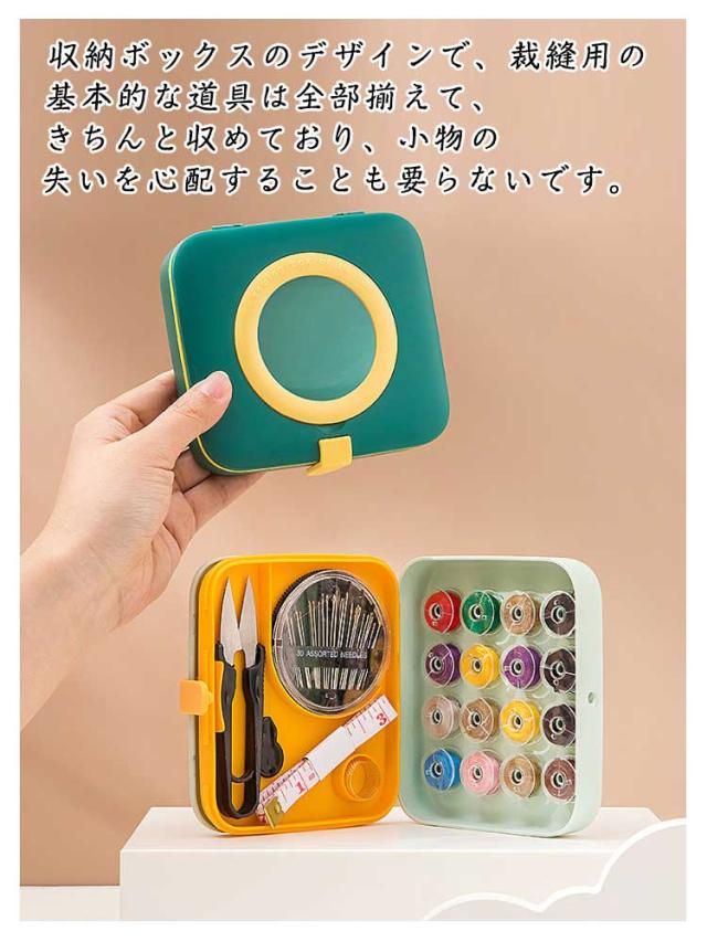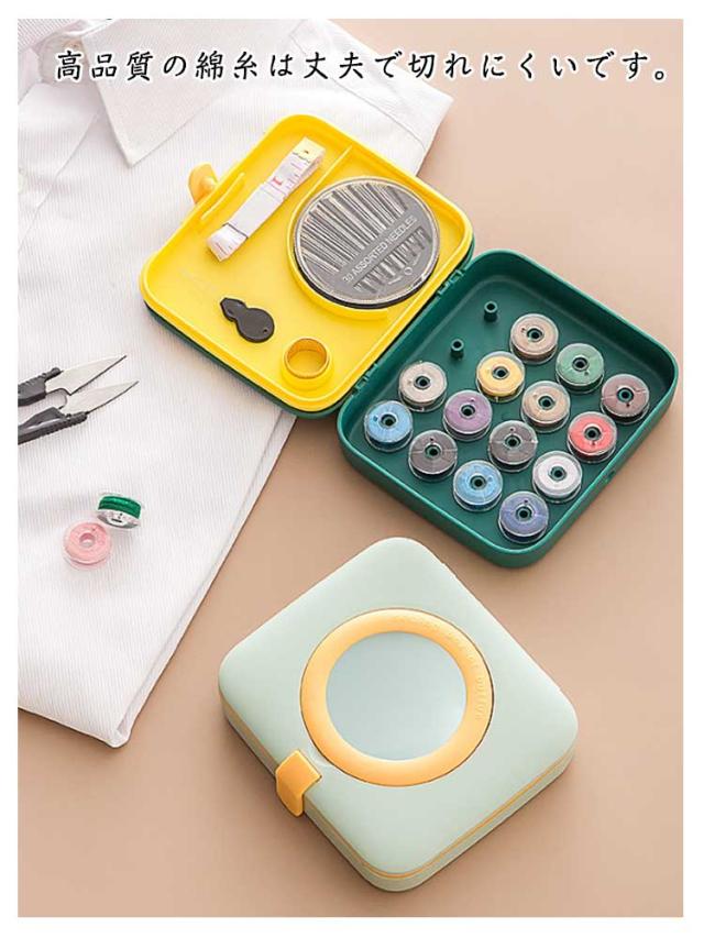| サイズについての説明 | 【セット内容】収納ボックス*1、拡大鏡*1、縫い糸*16色、ぬい針ケース*1、糸通し*1、指ぬき*1、巻き尺*1、糸切ばさみ*1 【重量】:約142g ※商品のサイズは手作業で測定させて頂いておりますので、若干の誤差があります。 |