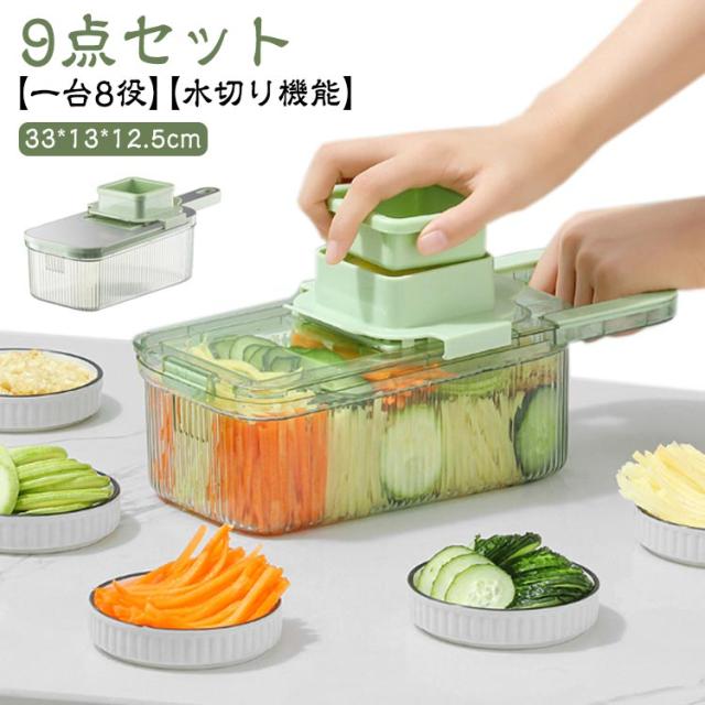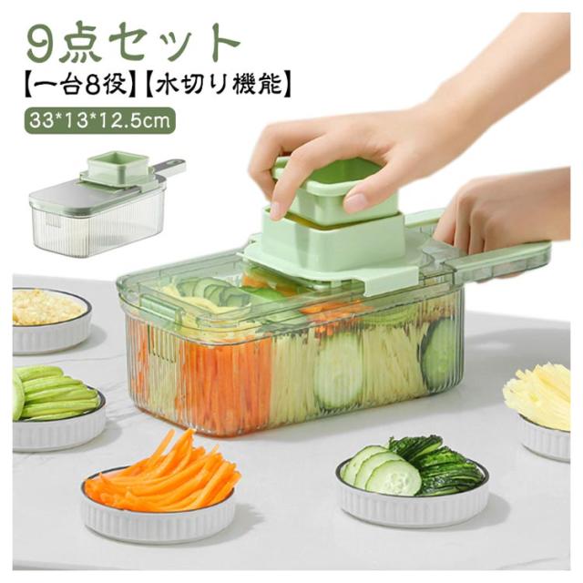千切り 9点セット スライサー おろし金 千切り みじん切り キッチンスライサー 野菜調理器セット 安全ホルダー付き ピーラー ステンレス 千切りスライサー 野菜カッター おろし器 キャベツスライサー 水切り皿