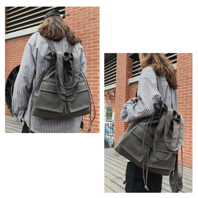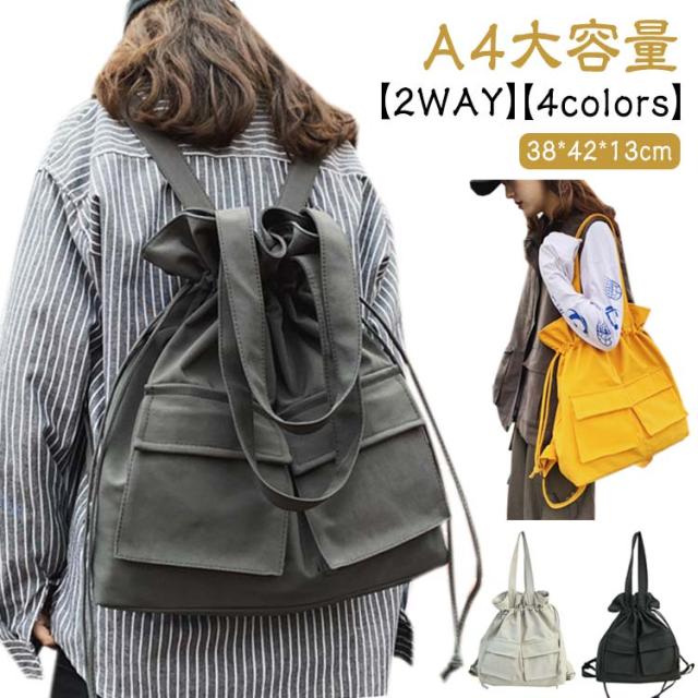 | 【2WAY】【A4大容量】【4colors】 実用性とデザイン性を兼ねそろえた2wayのリュック&トートバッグが登場! スタイルや好みに合わて持ち方を変えられます。 入り口が大きく開くため、中の荷物の出し入れがスムーズ。 紐を絞れば巾着の様にシルエットが変えられるデザイン性の高さもポイント。 大容量の収納とシンプルな作りなので、カジュアルすぎない大人のバッグとしてご使用いただけます。 | |