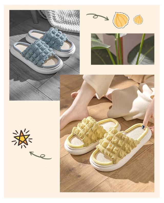 | おしゃれ感たっぷりの夏用ルームシューズ! 麻で作るものは着る人に良い感じを与える。 夏や春秋にも適用するものです。 通気性が良く、水分の吸湿や発散性に優れているため、清涼感があります。 底面には弾力性のあるEVAを採用し、衝撃を吸収してくれるため、足音を減らしし、歩いたときにパタパタと音がしません。 滑り止めが付いているので、階段を下りるのに助かっています。 | |