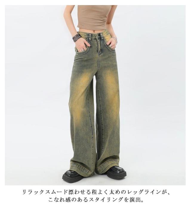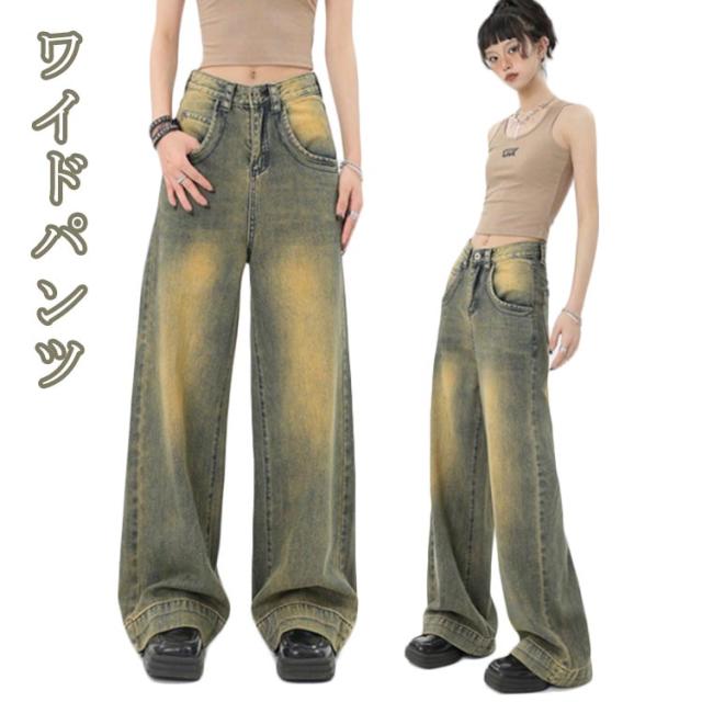 きれいめパンツ 春 ズボン ハイウエスト デニム ハイウエスト 太め ワイドパンツ レディース デニムパンツ 低身長 デニムパンツ デニム 春夏 秋冬 ワイドパンツ ワイドパンツ カジュアル おしゃれ 美脚 リラックス ジーンズ 大きいサイズ 体型カバー 韓国